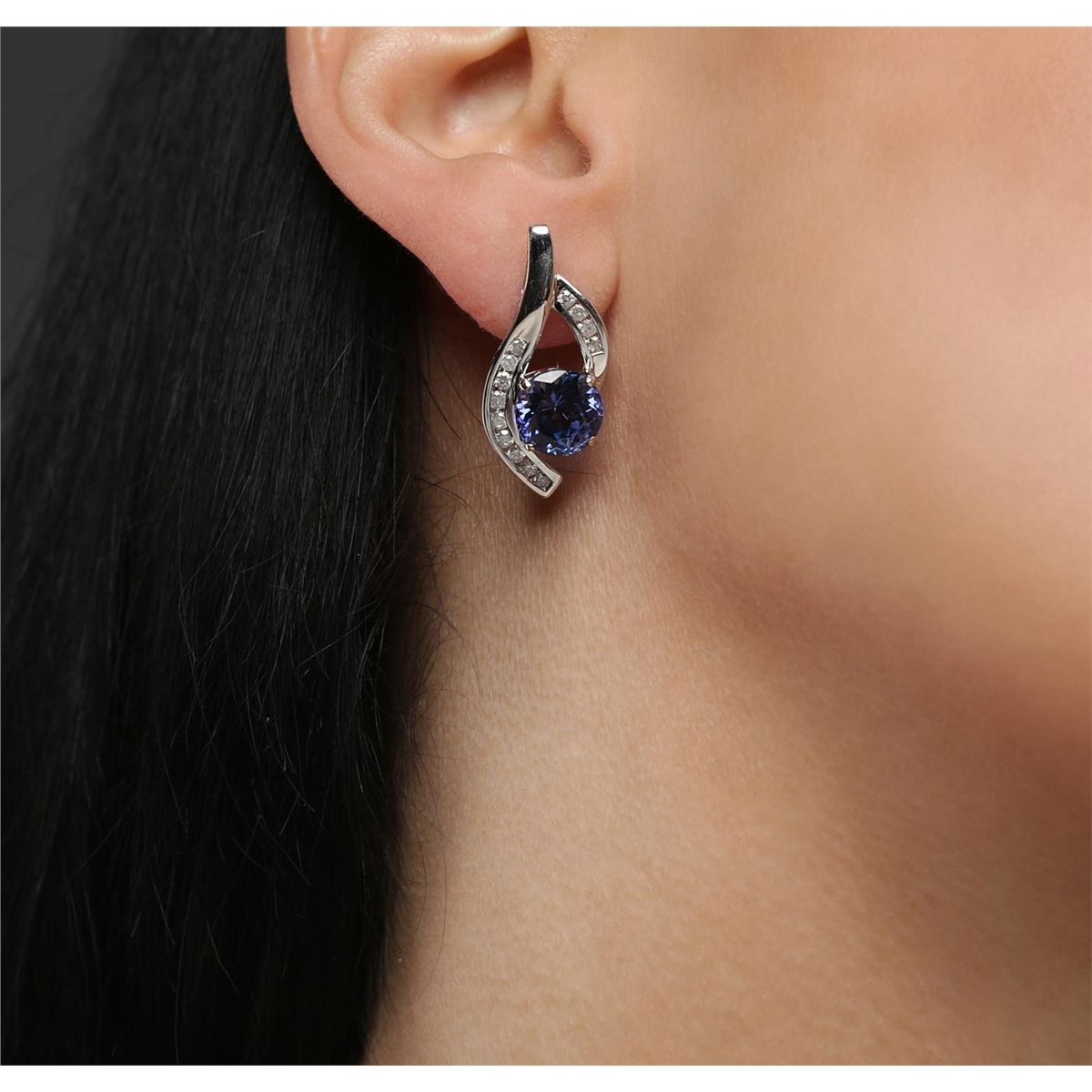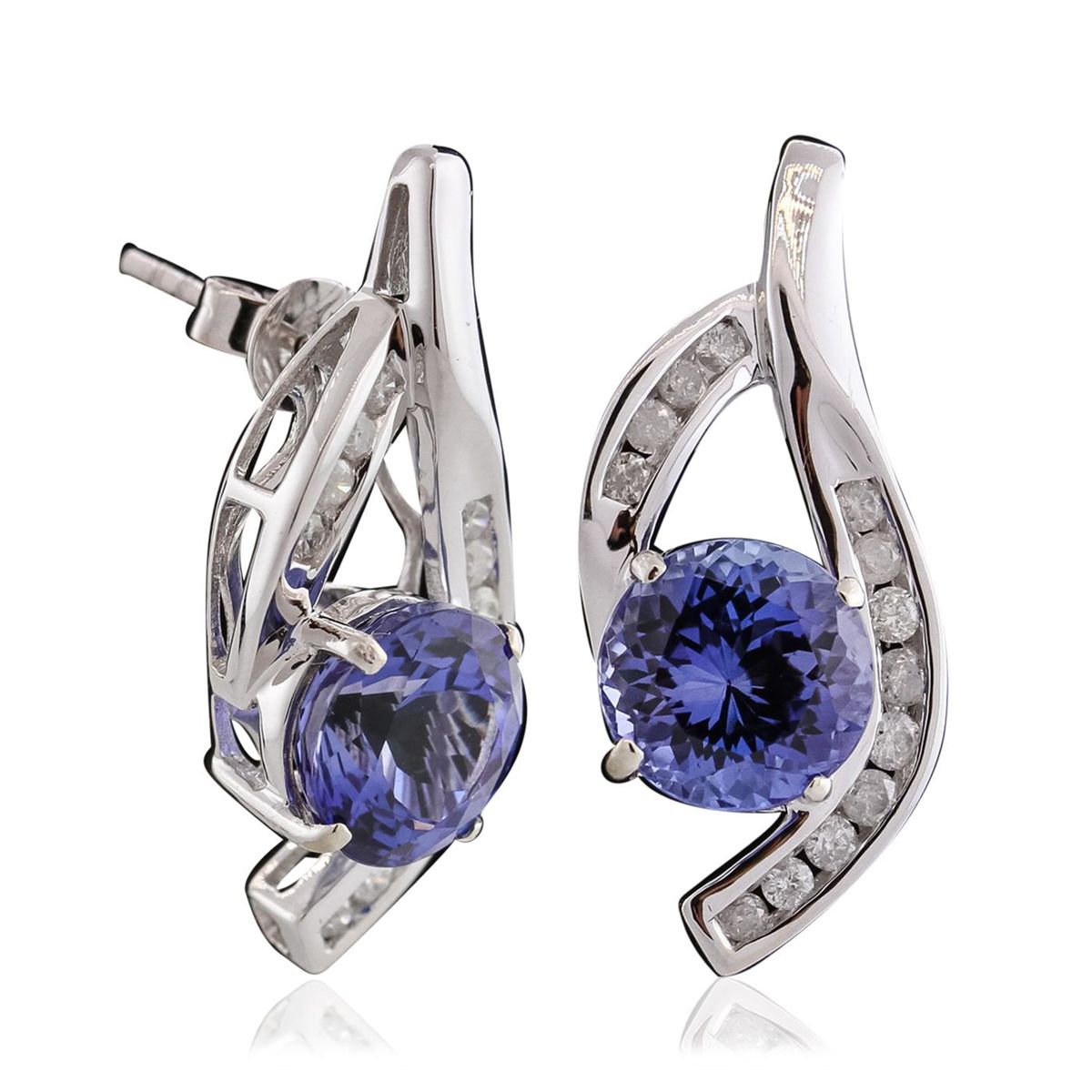 One pair electronically tested 14KT white gold ladies cast & assembled tanzanite and diamond earrings with standard backs. Bright polish finish. Trademark is Orianne. Identified with markings of "14K". Condition is new, good workmanship. Containing: Two prong set round brilliant cut natural tanzanites, measuring 8.90 - 8.80 x 5.50 mm, 8% bulge factor, approximate total weight of 6.30ct., clarity is eye clean, type I, medium dark, very slightly grayish, bluish violet color, (GIA bV 6/3), cut is good. Transmitting light with no distortion, transparent. Color grade is an average for the pair. Graded in the setting. Tanzanite is a very rare gemstone that is only found in the country of Tanzania. Originally discovered in 1967. Tiffany & Company, named the stone Tanzanite. It is found in the Usumburu Mountains that border the Umba Valley of northern Tanzania. Tanzanite occurs in gray, brown, violet, blue, reddish-purple, & green. The gem is interesting because of its exceptional pleochroism. Rotated in different directions a tanzanite will exhibit multiple changes of color. Tanzanite has a low tolerance to ultrasonic cleaning, and should not be cleaned using this method. Twenty-Four channel set round brilliant cut diamonds, measuring 1.90 - 1.80 x 1.11mm (depth est.) approximate total weight of 24 Stones = 0.65ct. Graded in the setting. Clarity: I-1 to I-3. Color: H - J. Total Weight of Colored Stones 6.30ct. Total Weight of Diamonds 0.65ct. Total Weight of Earrings 6.71gm. AIG Appraised at $15,515.00.