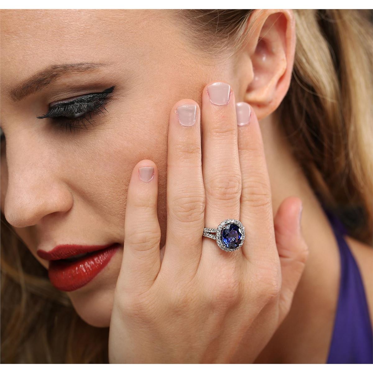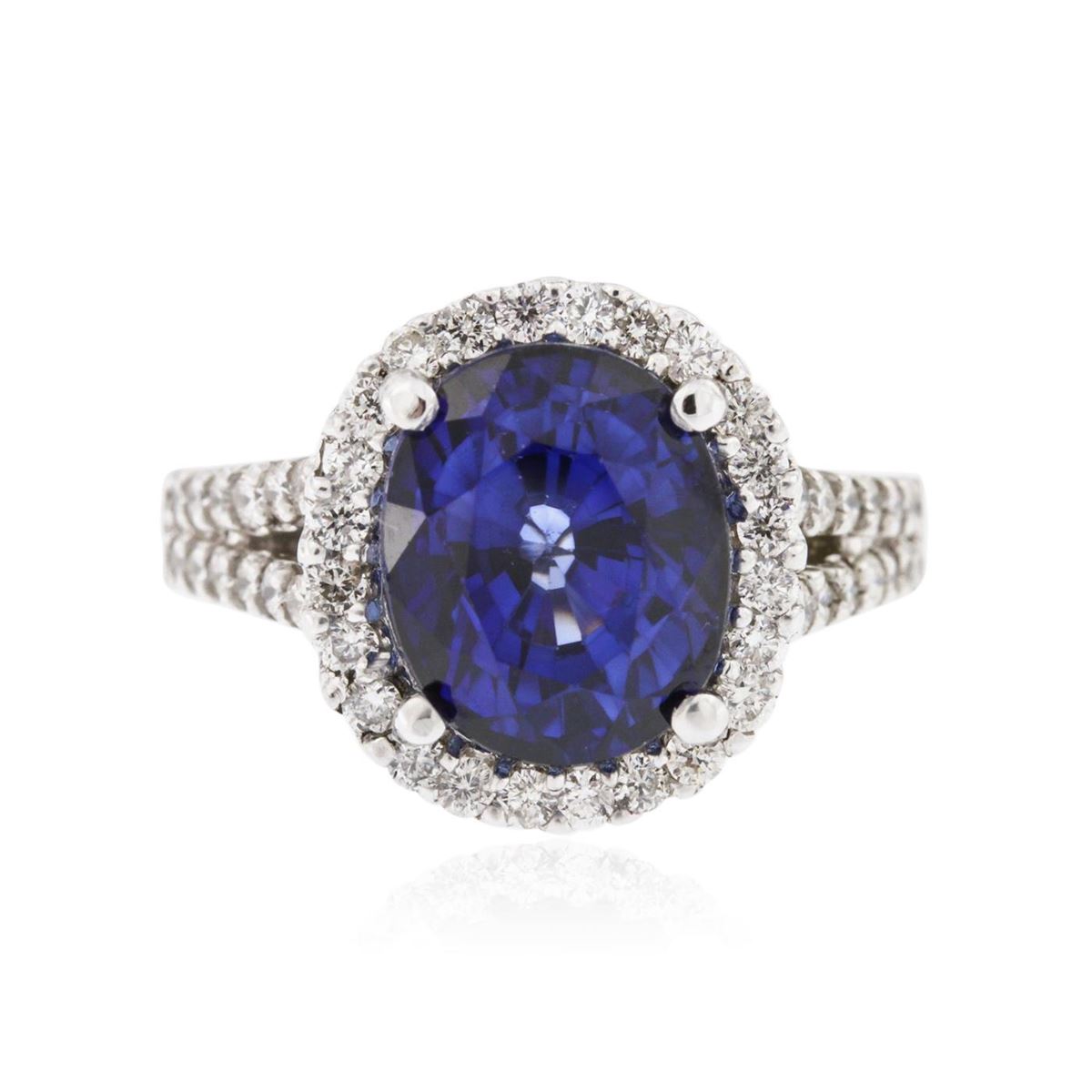 One electronically tested 14KT white gold Ladies combination cast & assembled fancy ring with a bright polish finish. Identified with markings of "14K". Condition is excellent. Containing: One prong set oval modified brilliant cut natural blue sapphire, measuring 11.10 x 9.10 x 6.50mm, approximate weight of 6.64ct., clarity is eye clean, type II, cut is very good. Colored gemstones are presumed to have been subjected to commonly used and possible undetectable color/clarity enhancement processes. Forty-Eight prong set round brilliant cut diamonds, measuring 1.60 x 0.96mm (depth est.) approximate total weight of 48 Stones = 0.78ct. Clarity of SI-1 to SI-2, Color of J - K, Cut is Good. Total Weight of Colored Stones 6.64ct. Total Weight of Diamonds 0.78ct. Total Weight of Ring 8.90gm. GGL Appraised at $17,645.00.
