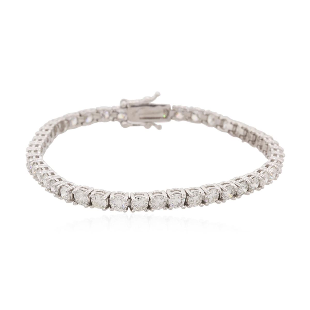 One electronically tested 14KT white gold ladies cast diamond tennis bracelet with a hidden box clasp with a bright and brushed finish. Measurements: 6.75." in length. Identified with markings of "14K". Condition is new. Containing: Forty-Three prong set GGL Appraised at $15,035.00.