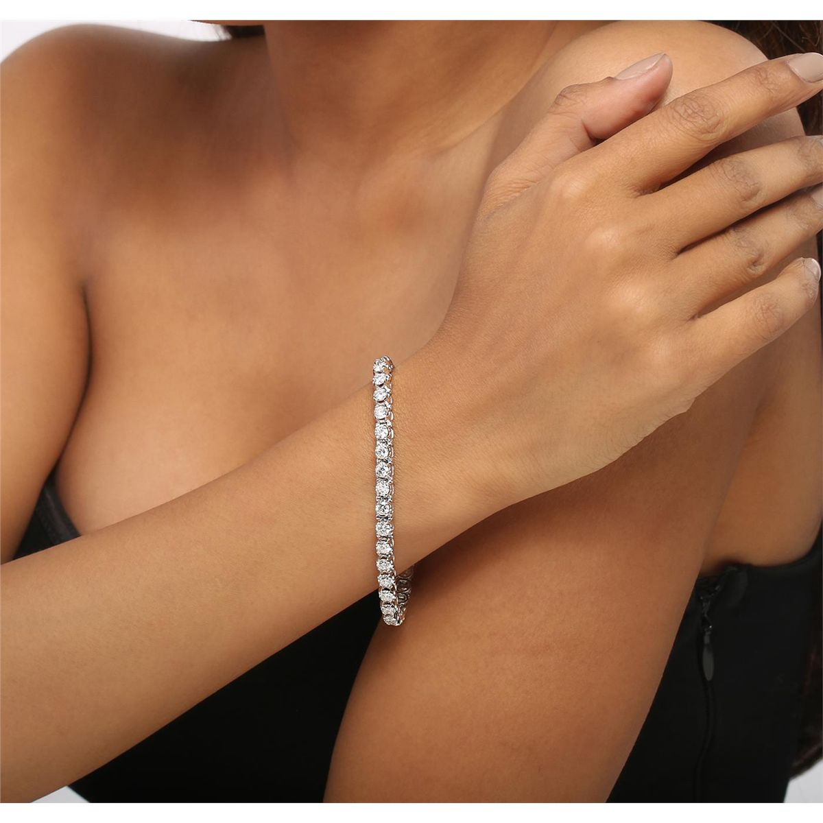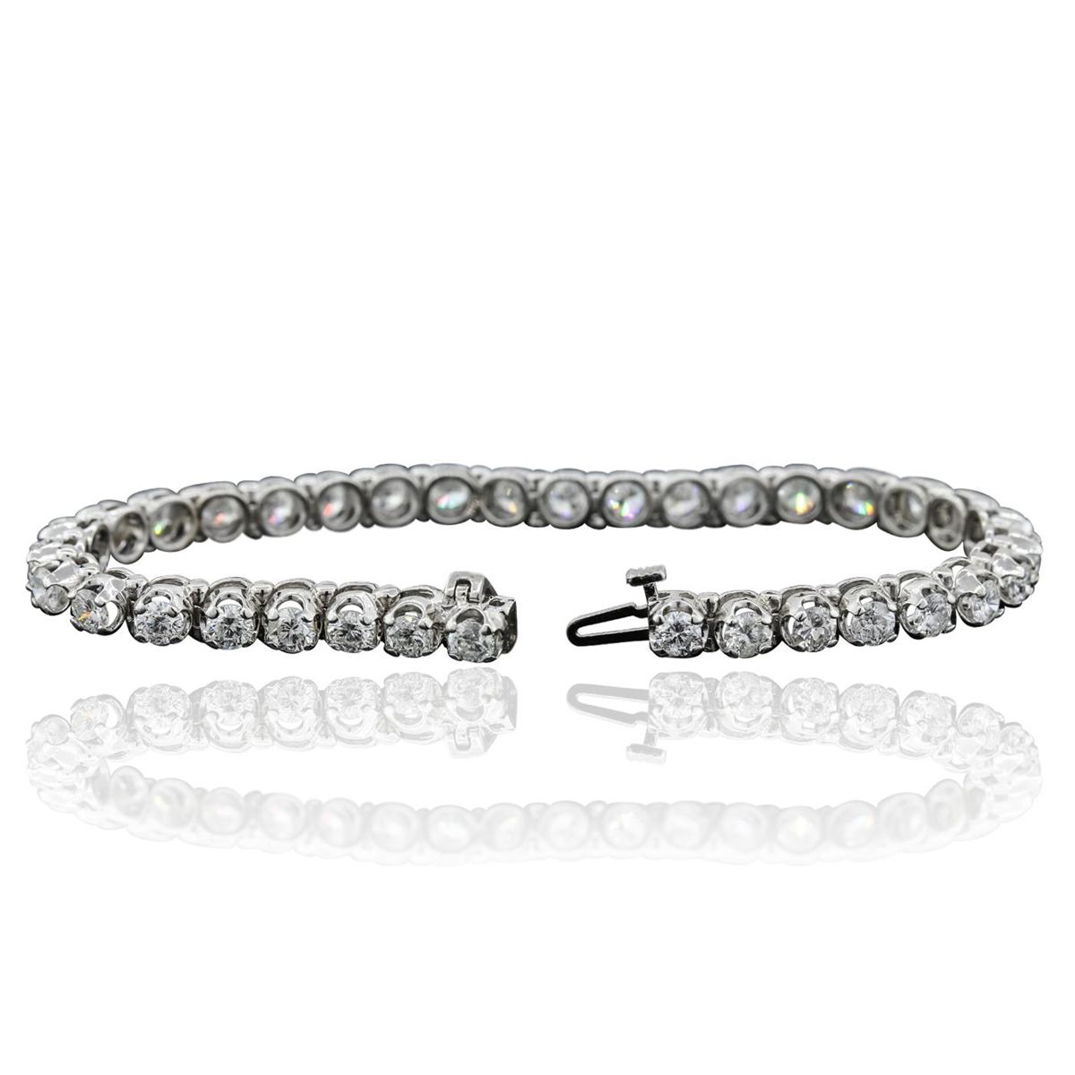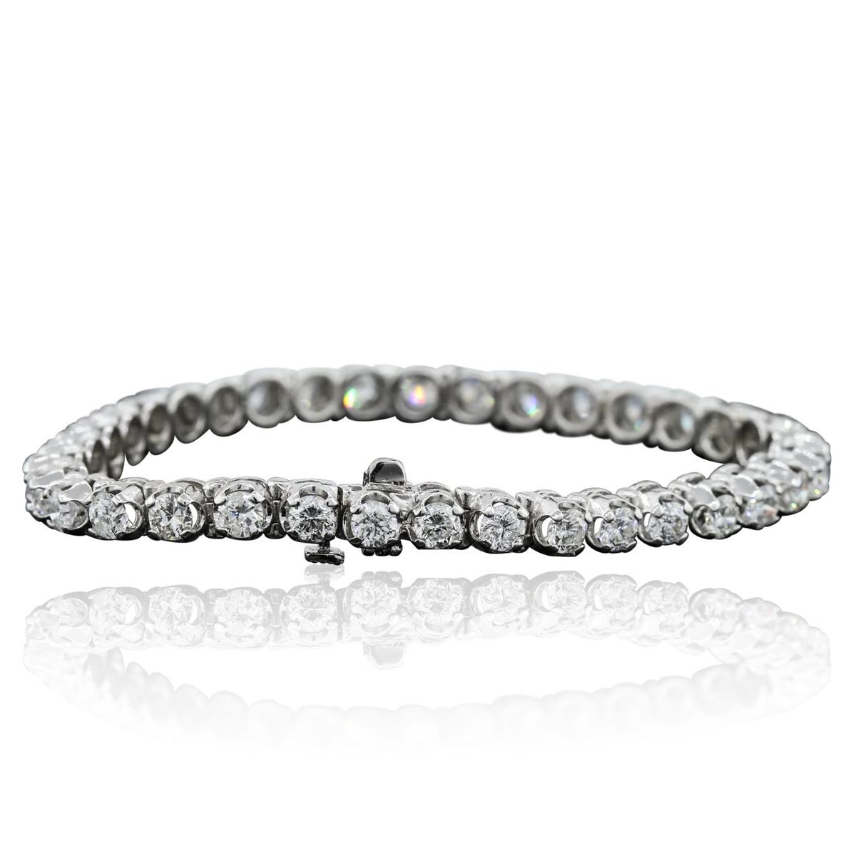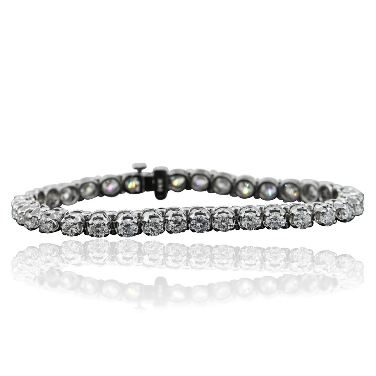 One electronically tested 14KT white gold ladies combination cast & assembled tennis bracelet with a hidden box clasp with a bright polish finish. Condition is new. Measurements: 6.85" in length. Identified with markings of "14K". Containing: Thirty-Five prong set round brilliant cut diamonds, measuring 3.50 - 3.50 x 2.10mm (depth est.) approximate total weight of 35 Stones = 6.80ct. Clarity: SI-2 to I-1. Color: H - J, Cut is Good. All diamonds are graded in the mounting, unless otherwise stated. Total Weight of Diamonds 6.80ct. Total Weight of Bracelet 16.10 grams. GGL Appraised at $29,615.00.