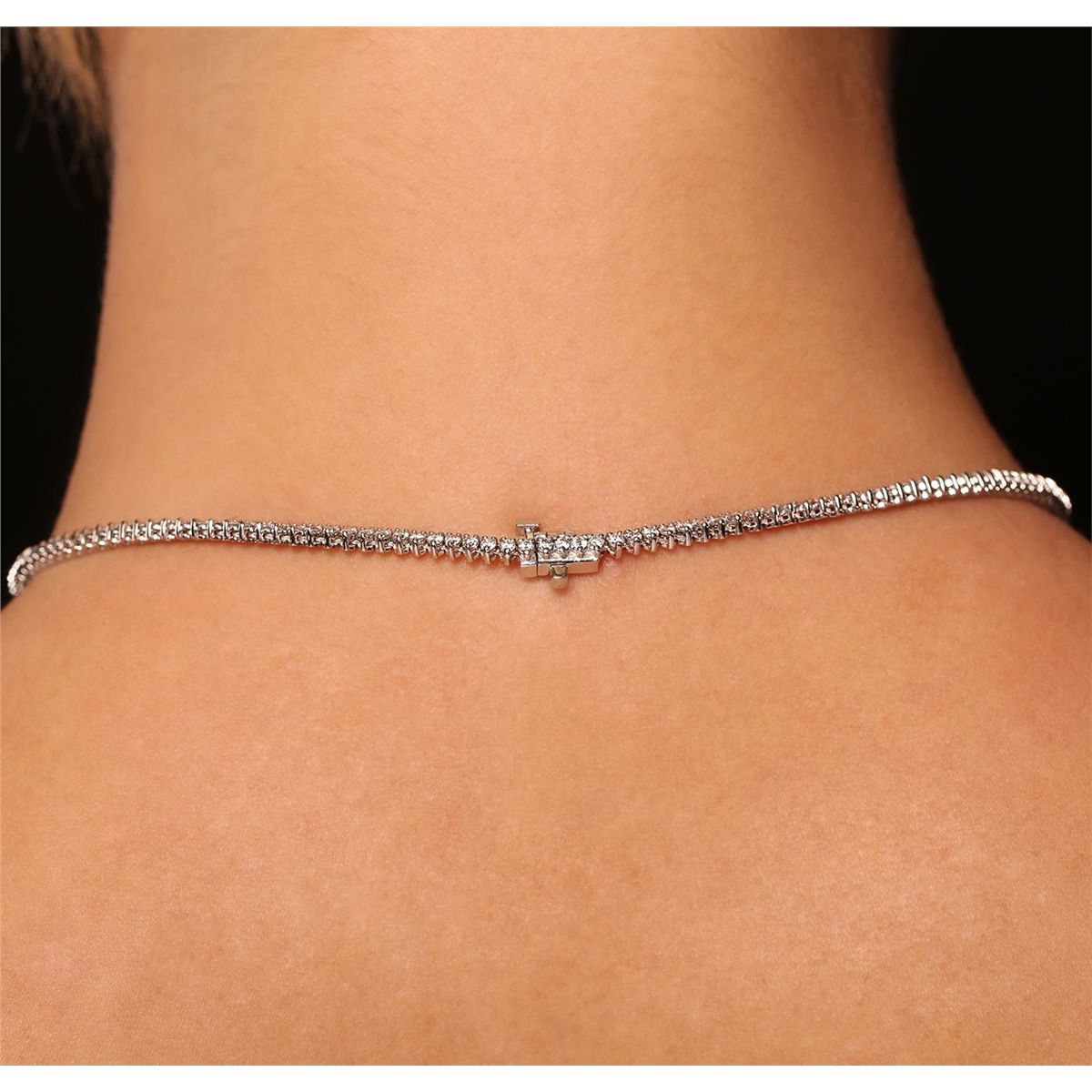 One electronically tested 14KT white gold Ladies combination cast & assembled diamond necklaceand pendant with a hidden box clasp with a bright polish finish. Condition is new. Identified with markings of "14K". Containing: One prong set pear modified brilliant cut natural tanzanite, measuring 33.65 x 21.14 x 13.58mm, exact weight 69.66ct., clarity is eye clean, type I, medium, very slightly grayish, bluish violet color, (GIA bV 5/3), cut is very good. GIA Report: 6167000255.One prong set round brilliant cut diamond, measuring 5.00 - 5.00 x 3.00mm (depth est.) approximate weight of 0.46ct. . Clarity: SI-1. Color: I, Cut is Good. Four prong set round brilliant cut diamonds, measuring 4.10 - 3.60 x 2.31mm (depth est.) approximate. Total Weight of 4 Stones = 0.72ct. . Clarity: SI-2 to I-1. Color: I - J, Cut is Good. One Hundred Sixty prong set round brilliant cut diamonds, measuring 3.00 - 1.80 x 1.44mm (depth est.) approximate. Total Weight of 160 Stones = 3.80ct. . Clarity: SI-2 to I-2. Color: J - K, Cut is Good. One Hundred Nine prong set round brilliant cut diamonds, measuring 1.90 - 1.50 x 1.02mm (depth est.) approximate. Total Weight of 109 Stones = 1.95ct. . Clarity: I-1 to I-2. Color: I - J, Cut is Good. Total Weight of Colored Stones 69.66ct. Total Weight of Diamonds 6.93ct. Total Weight of Pendant & Chain 43.20 grams. GGLAppraised at $109,045.00.