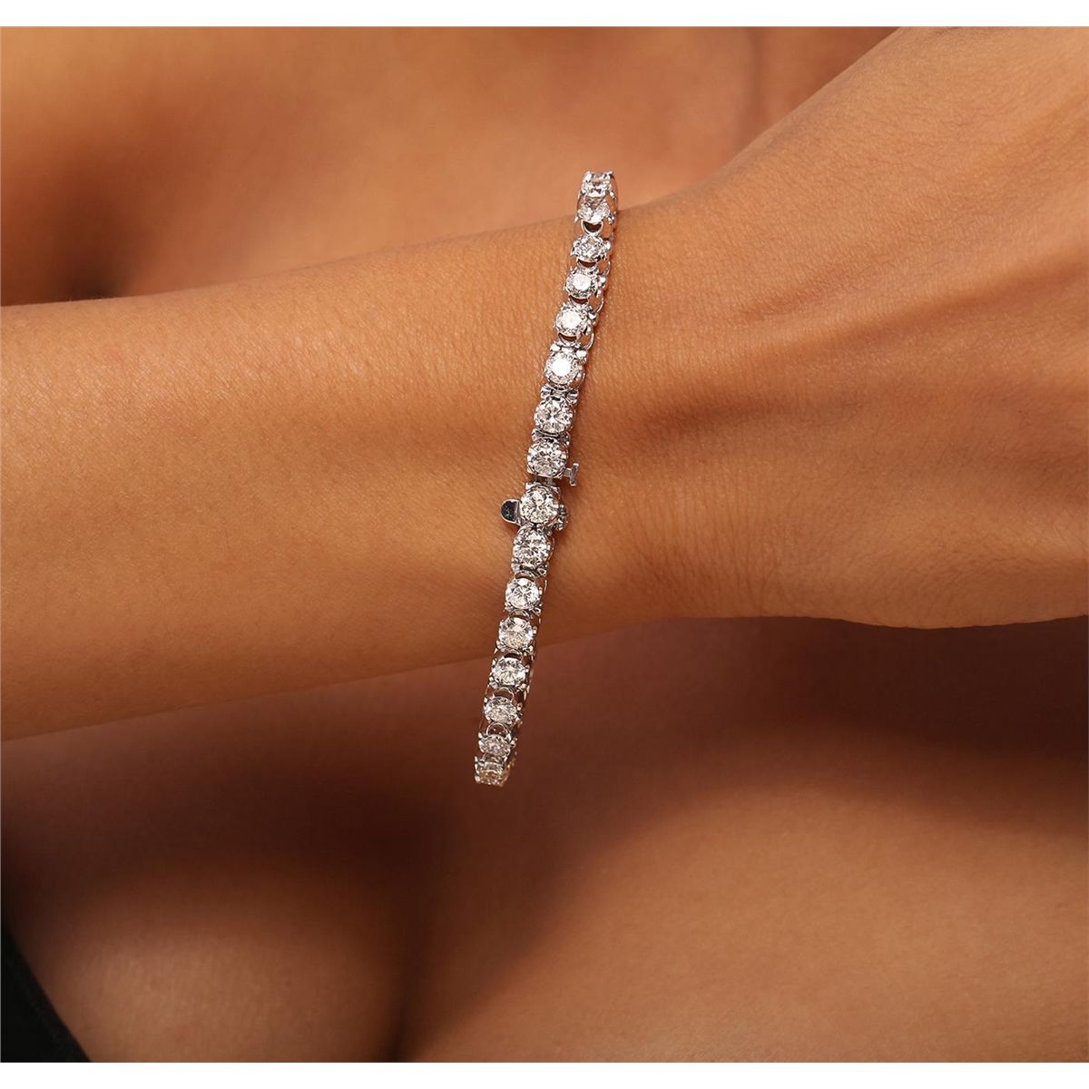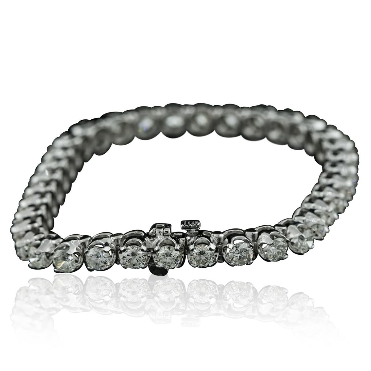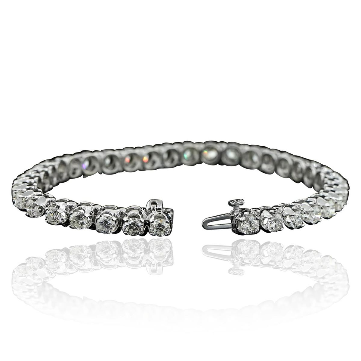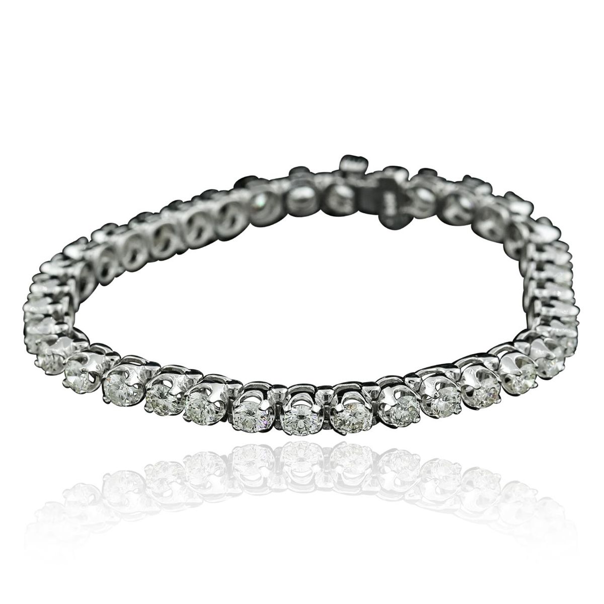 One electronically tested 14KT white gold ladies combination cast & assembled tennis bracelet with a hidden box clasp with a bright polish finish. Condition is new. Measurements: 7" in length. Identified with markings of "14K". Containing: Thirty-Five prong set round brilliant cut diamonds, measuring 3.80 - 3.80 x 2.28mm (depth est.) approximate total weight of 35 Stones = 7.03ct. Clarity: SI-1 to I-1. Color: H - J, Cut is Good. All diamonds are graded in the mounting, unless otherwise stated. Total Weight of Diamonds 7.03ct. Total Weight of Bracelet 16.10 grams. GGL Appraised at $29,815.00.