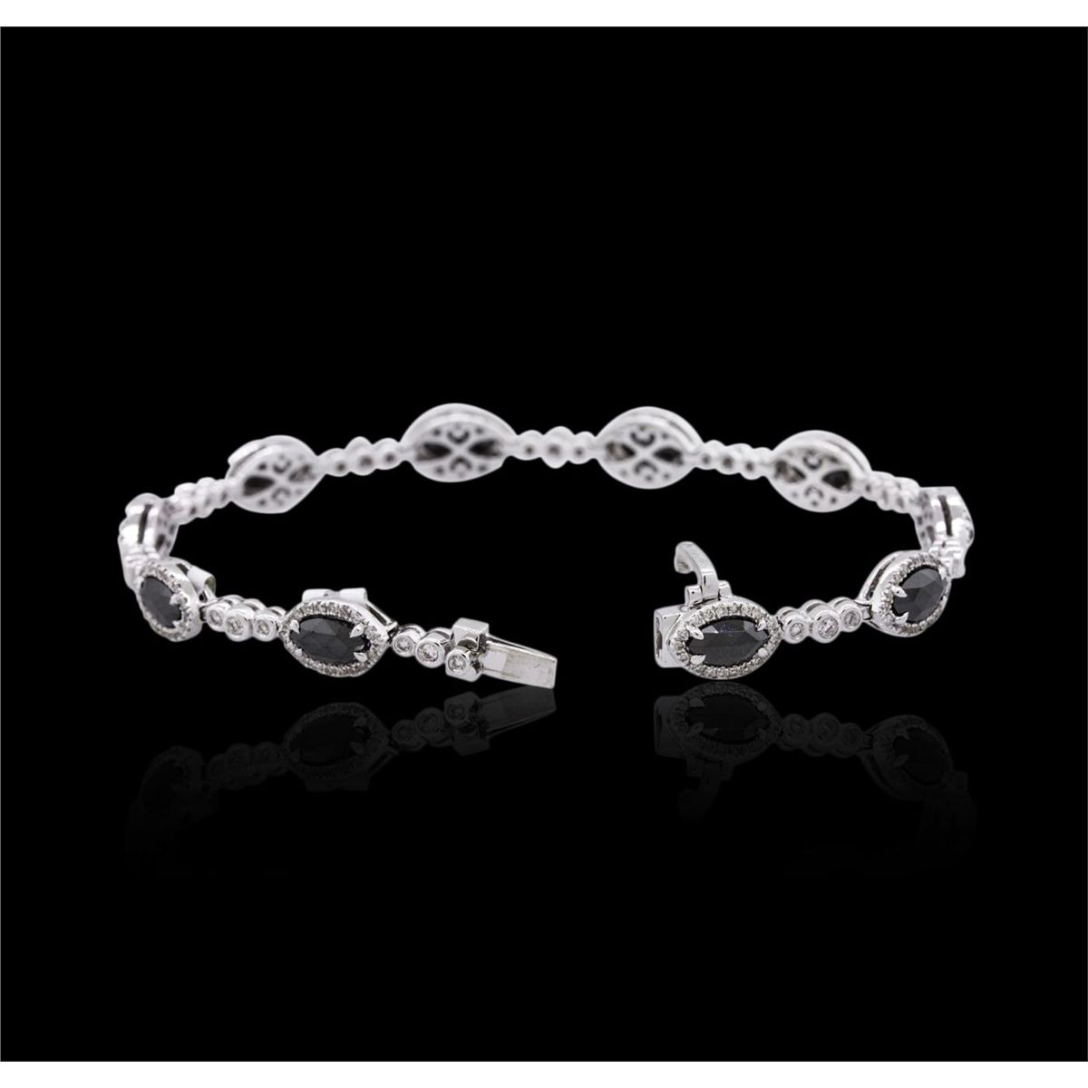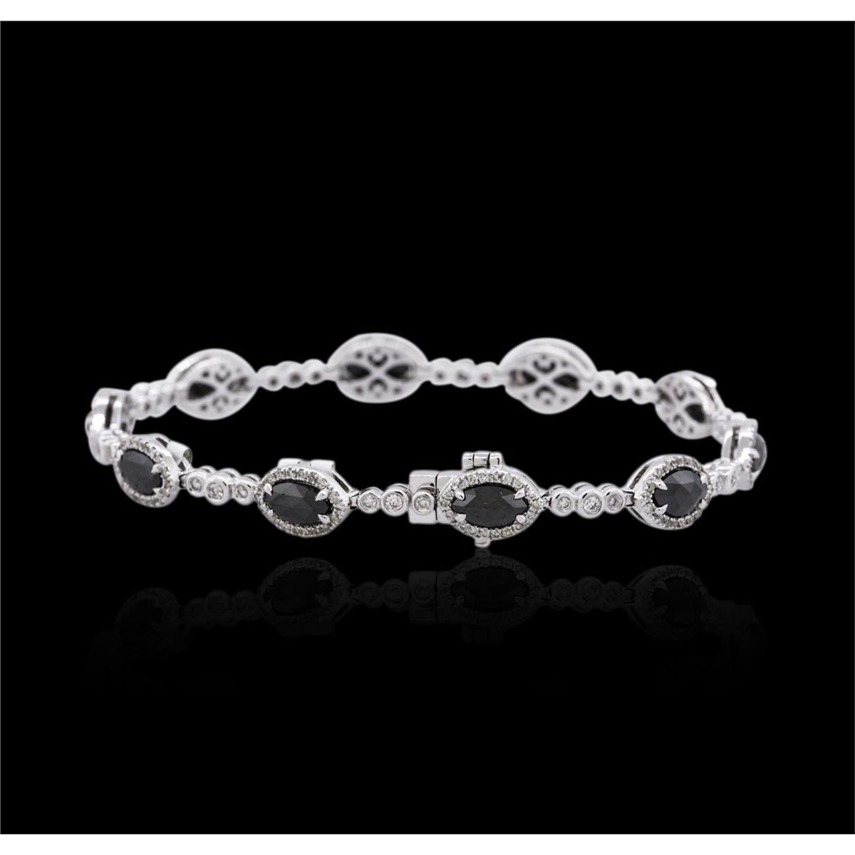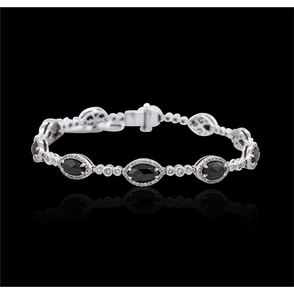 One 14KT white gold bracelet containing natural marquise rose cut fancy black diamonds, enhanced for color, with a total weight of 5.91ct. The bracelet also contains side stones graded H-I color, SI3-I2 clarity with a total weight of 1.16ct. Total weight of the bracelet is 13.40 grams. EGL Appraised at $6,970.00.