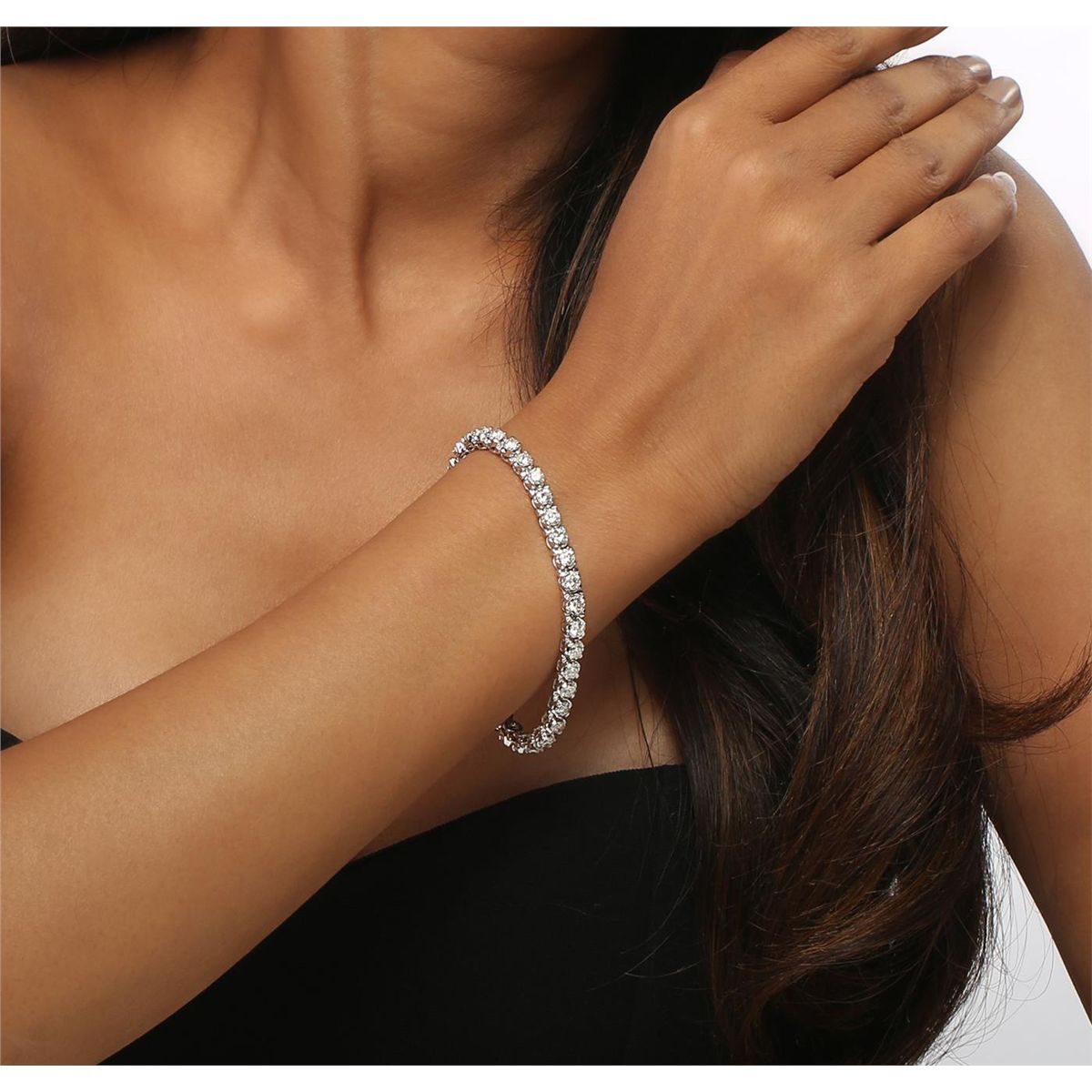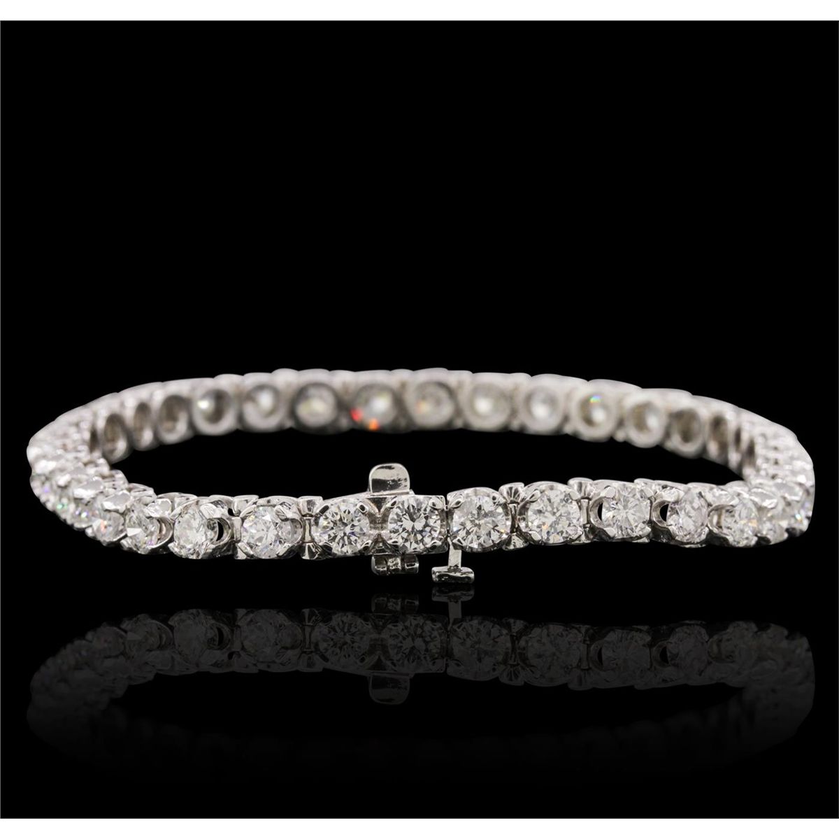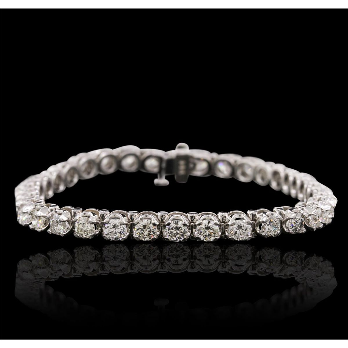 One electronically tested 14KT white gold ladies combination cast & assembled tennis bracelet with a hidden box clasp with a bright polish finish. Condition is new. Measurements: 6.85" in length. Identified with markings of "14K". Containing: Thirty-Six prong set round brilliant cut diamonds, measuring 3.80 - 3.80 x 2.28mm (depth est.) approximate total weight of 36 Stones = 7.23ct. Clarity: SI-1 to I-1. Color: I - J, Cut is Good. All diamonds are graded in the mounting, unless otherwise stated. Total Weight of Diamonds 7.23ct. Total Weight of Bracelet 15.10 grams. GGL Appraised at $29,205.00.
