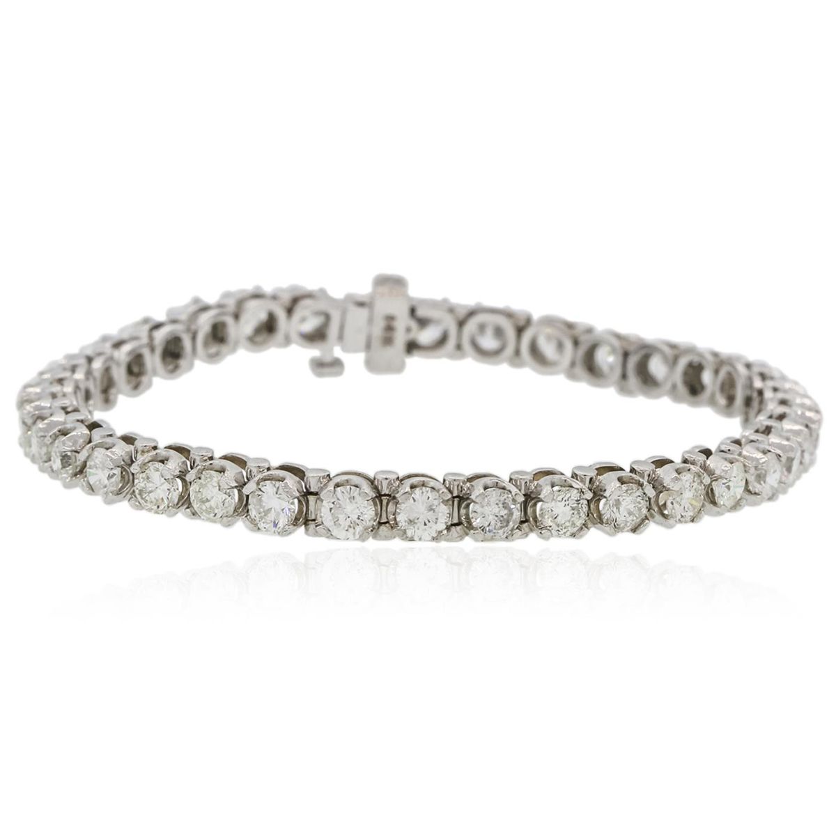One electronically tested 14KT white gold ladies combination cast & assembled tennis bracelet with a hidden box clasp with a bright polish finish. Condition is new. Measurements: 7" in length. Identified with markings of "14K". Containing: Thirty-Six prong set round brilliant cut diamonds, measuring 3.80 - 3.80 x 2.28mm (depth est.) approximate total weight of 36 Stones = 7.23ct. Clarity: SI-2 to I-2. Color: J, Cut is Good. All diamonds are graded in the mounting, unless otherwise stated. Total Weight of Diamonds 7.23ct. Total Weight of Bracelet 15.30 grams. GGL Appraised at $27,440.00.