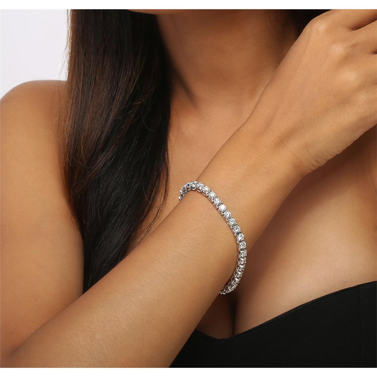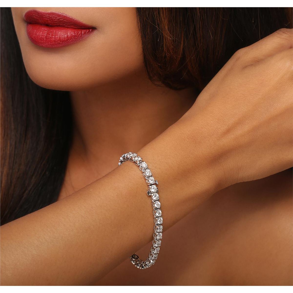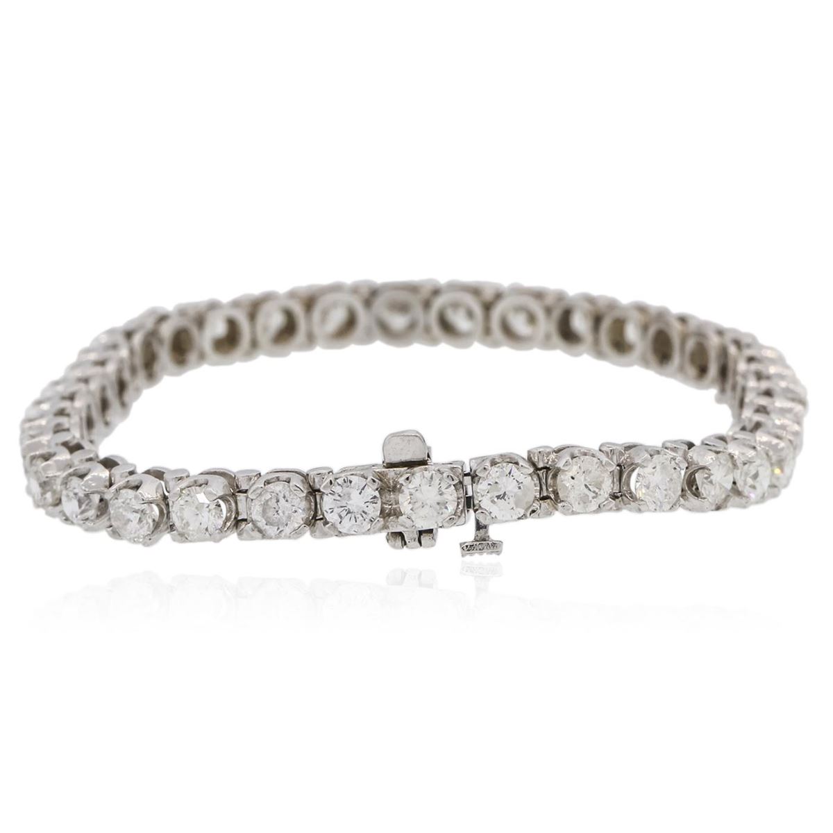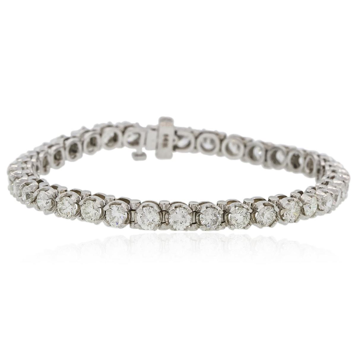 One electronically tested 14KT white gold ladies combination cast & assembled tennis bracelet with a hidden box clasp with a bright polish finish. Condition is new. Measurements: 7" in length. Identified with markings of "14K". Containing: Thirty-Six prong set round brilliant cut diamonds, measuring 3.80 - 3.80 x 2.28mm (depth est.) approximate total weight of 36 Stones = 7.23ct. Clarity: SI-2 to I-2. Color: J, Cut is Good. All diamonds are graded in the mounting, unless otherwise stated. Total Weight of Diamonds 7.23ct. Total Weight of Bracelet 15.30 grams. GGL Appraised at $27,440.00.