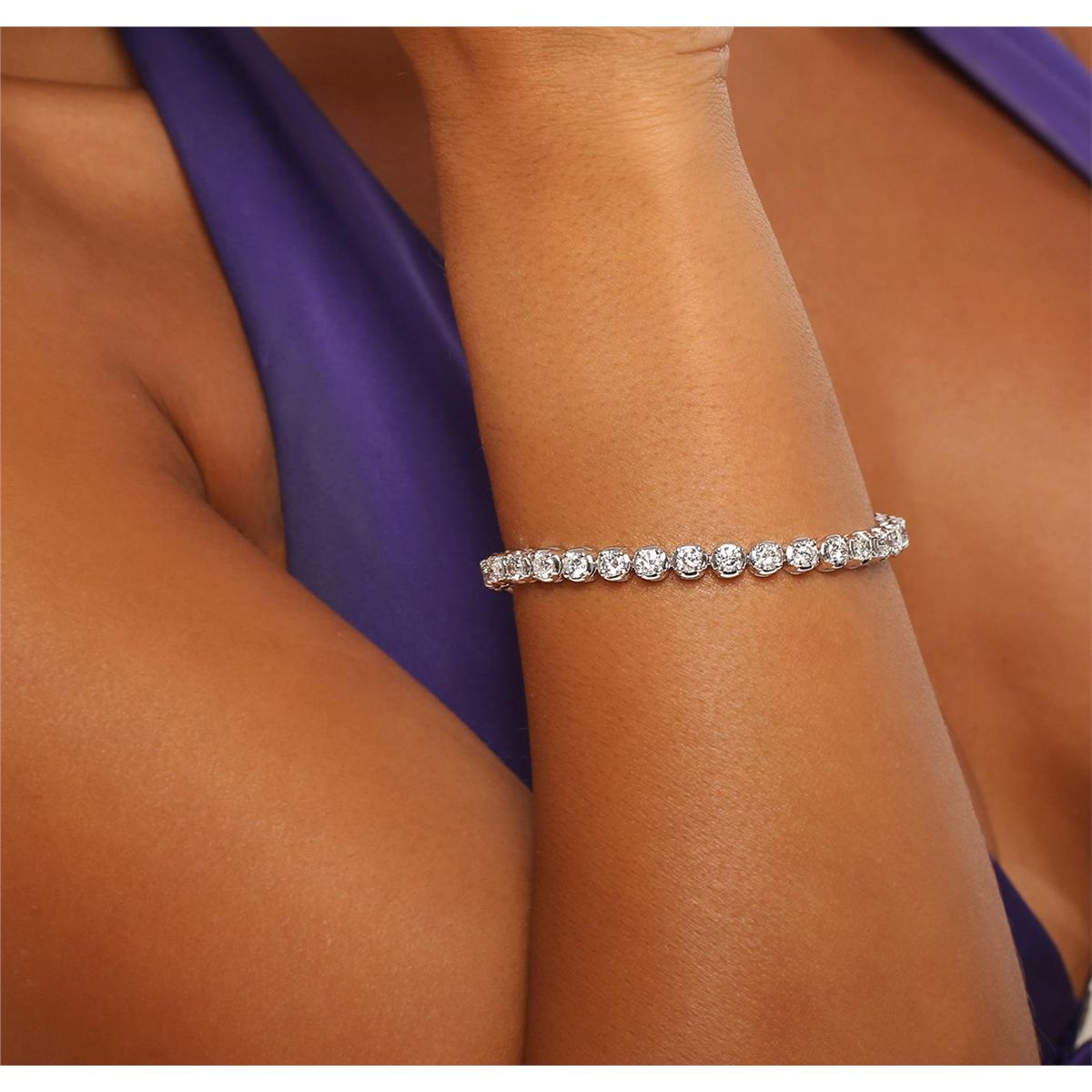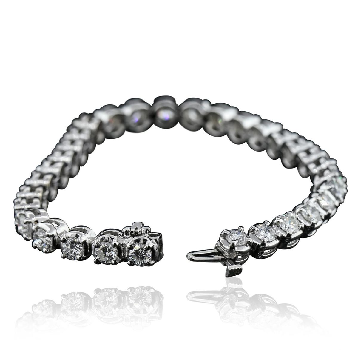 One electronically tested 14KT white gold ladies combination cast & assembled tennis bracelet with a hidden box clasp with a bright polish finish. Condition is new. Measurements: 7" in length. Identified with markings of "14K". Containing: Thirty-One prong set round brilliant cut diamonds, measuring 4.00 - 4.00 x 2.40mm (depth est.) approximate total weight of 31 Stones = 7.26ct. Clarity: SI-1 to I-1. Color: G - J, Cut is Good. All diamonds are graded in the mounting, unless otherwise stated. Total Weight of Diamonds 7.26ct. Total Weight of Bracelet 18.80 grams. GGL Appraised at $34,470.00.