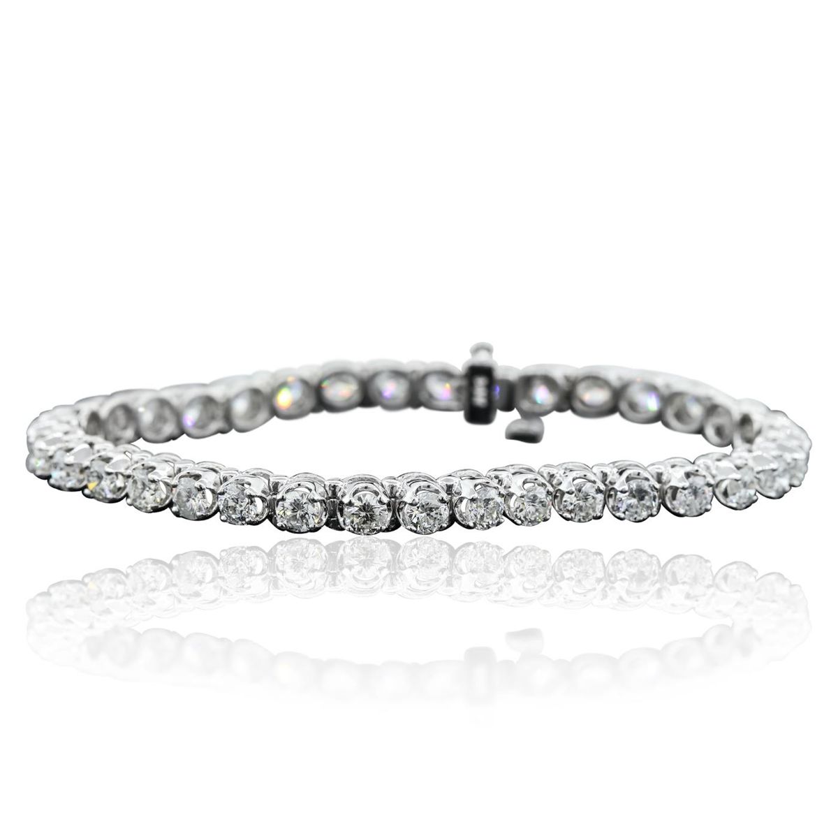 One electronically tested 14KT white gold ladies combination cast & assembled tennis bracelet with a hidden box clasp with a bright polish finish. Condition is new. Measurements: 6.85" in length. Identified with markings of "14K". Containing: Thirty-Five prong set round brilliant cut diamonds, measuring 4.00 - 3.90 x 2.37mm (depth est.) approximate total weight of 35 Stones = 7.89ct. Clarity: SI-2 to I-1. Color: H - J, Cut is Good. All diamonds are graded in the mounting, unless otherwise stated. Total Weight of Diamonds 7.89ct. Total Weight of Bracelet 15.80 grams. GGL Appraised at $33,225.00.