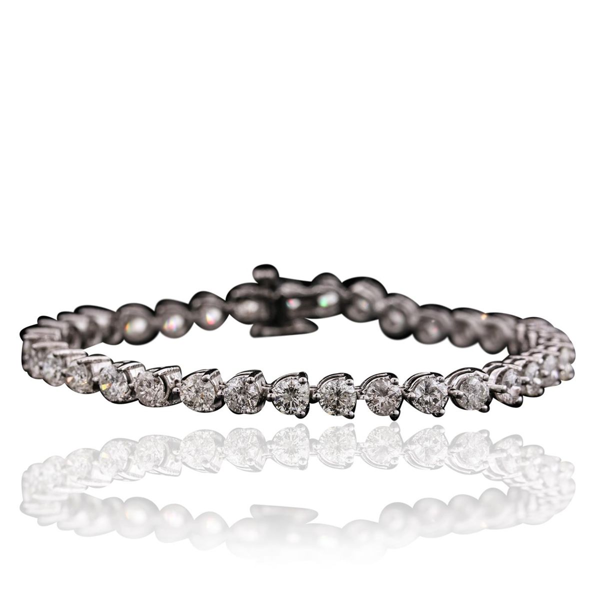 One electronically tested 14KT white gold ladies combination cast & assembled tennis bracelet with a hidden box clasp with a bright polish finish. Measurements: 7" in length. Identified with markings of "14K". Condition is new. Containing: Thirty-Five prong set round brilliant cut diamonds, measuring 4.00 - 4.00 x 2.40mm (depth est.) approximate total weight of 35 Stones = 8.20ct. Clarity: I-1 to I-3. Color: I - K, Cut is Good. All diamonds are graded in the mounting, unless otherwise stated. Total Weight of Diamonds 8.20ct. Total Weight of Bracelet 14.30 grams. GGL Appraised at $20,595.00.
