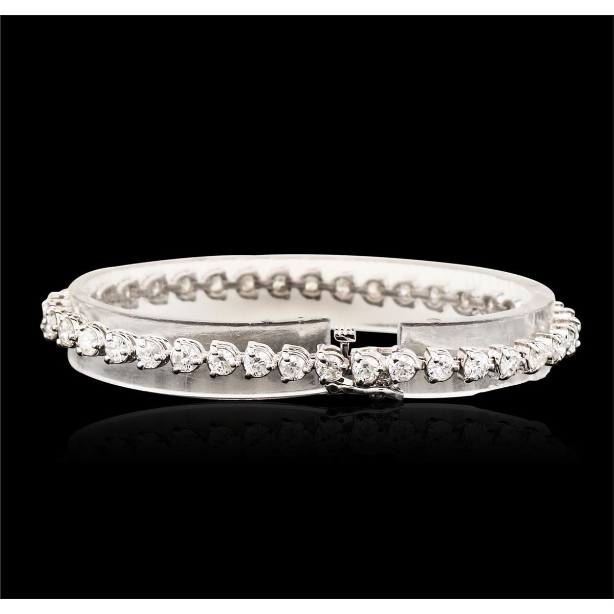 One electronically tested 14KT white gold ladies combination cast & assembled tennis bracelet with a hidden box clasp with safety closer with a bright polish finish. Measurements: 7 in length. Identified with markings of 14K. Condition is new. Containing: Thirty-Nine prong set round brilliant cut diamonds, measuring 3.90 - 3.90 x 2.34mm (depth est.) approximate total weight of 39 Stones = 8.47ct. Clarity: I-1 to I-2. Color: I - J, Cut is Good. All diamonds are graded in the mounting, unless otherwise stated. Total Weight of Diamonds 8.47ct. Total Weight of Bracelet 12.36 grams. GGL Appraised at $16,110.00.