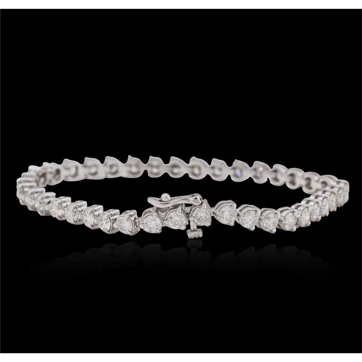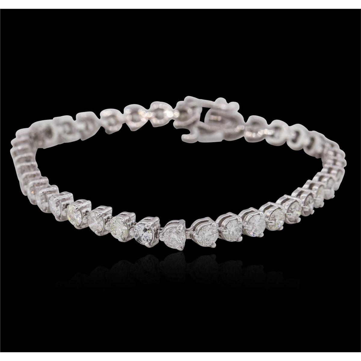 One electronically tested 14KT white gold ladies combination cast & assembled tennis bracelet with a hidden box clasp with safety closer with a bright polish finish. Measurements: 7 in length. Identified with markings of 14K. Condition is new. Containing: Thirty-Nine prong set round brilliant cut diamonds, measuring 3.90 - 3.90 x 2.34mm (depth est.) approximate total weight of 39 Stones = 8.47ct. Clarity: I-1 to I-2. Color: I - J, Cut is Good. All diamonds are graded in the mounting, unless otherwise stated. Total Weight of Diamonds 8.47ct. Total Weight of Bracelet 12.36 grams. GGL Appraised at $16,110.00.
