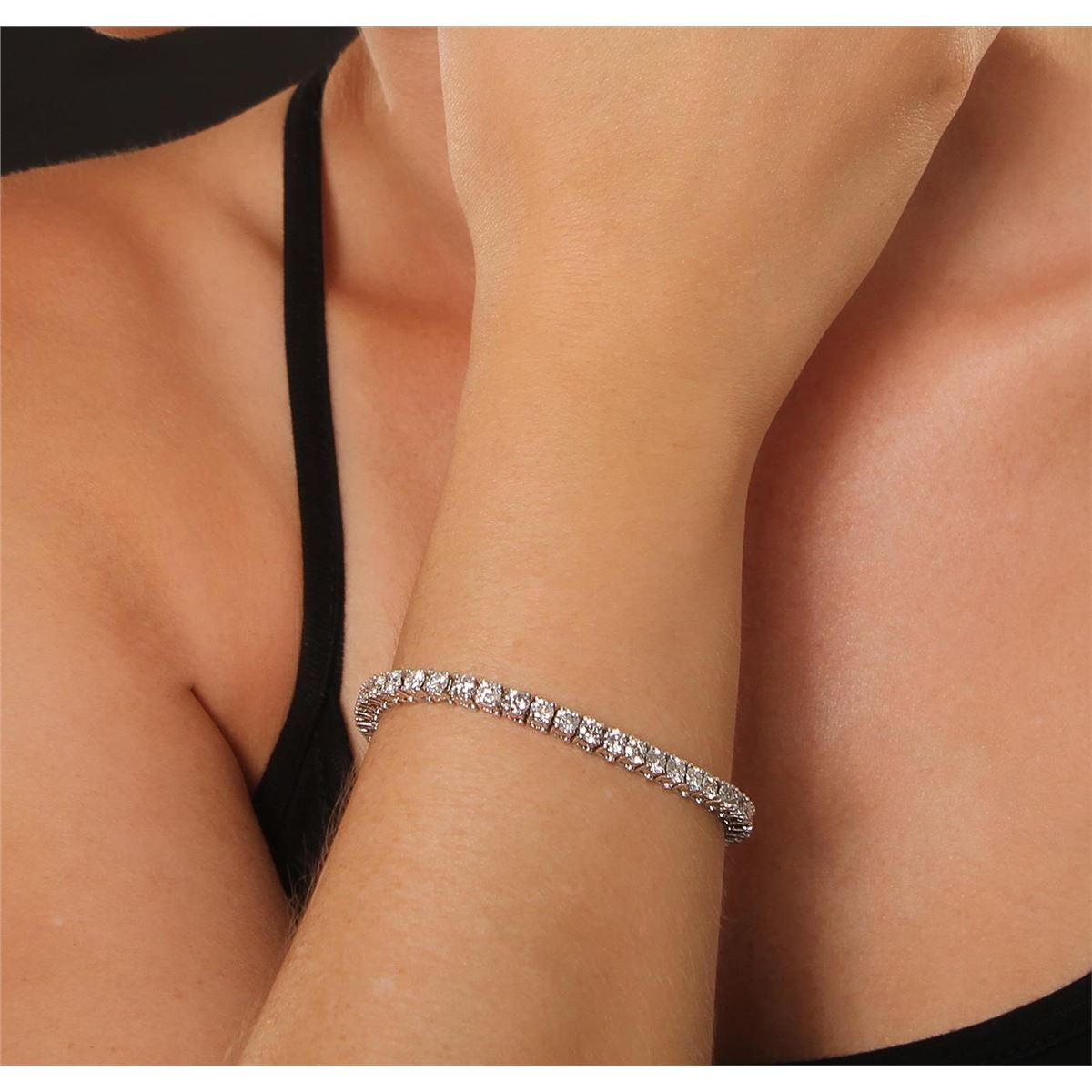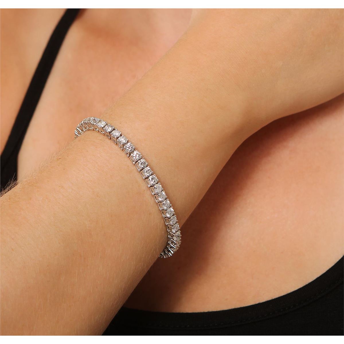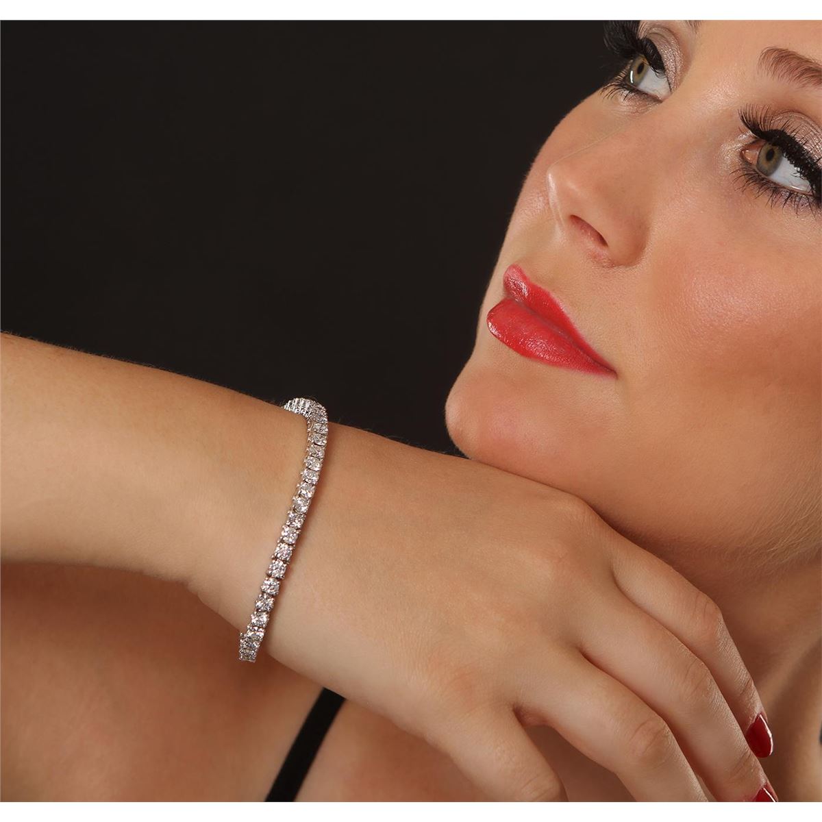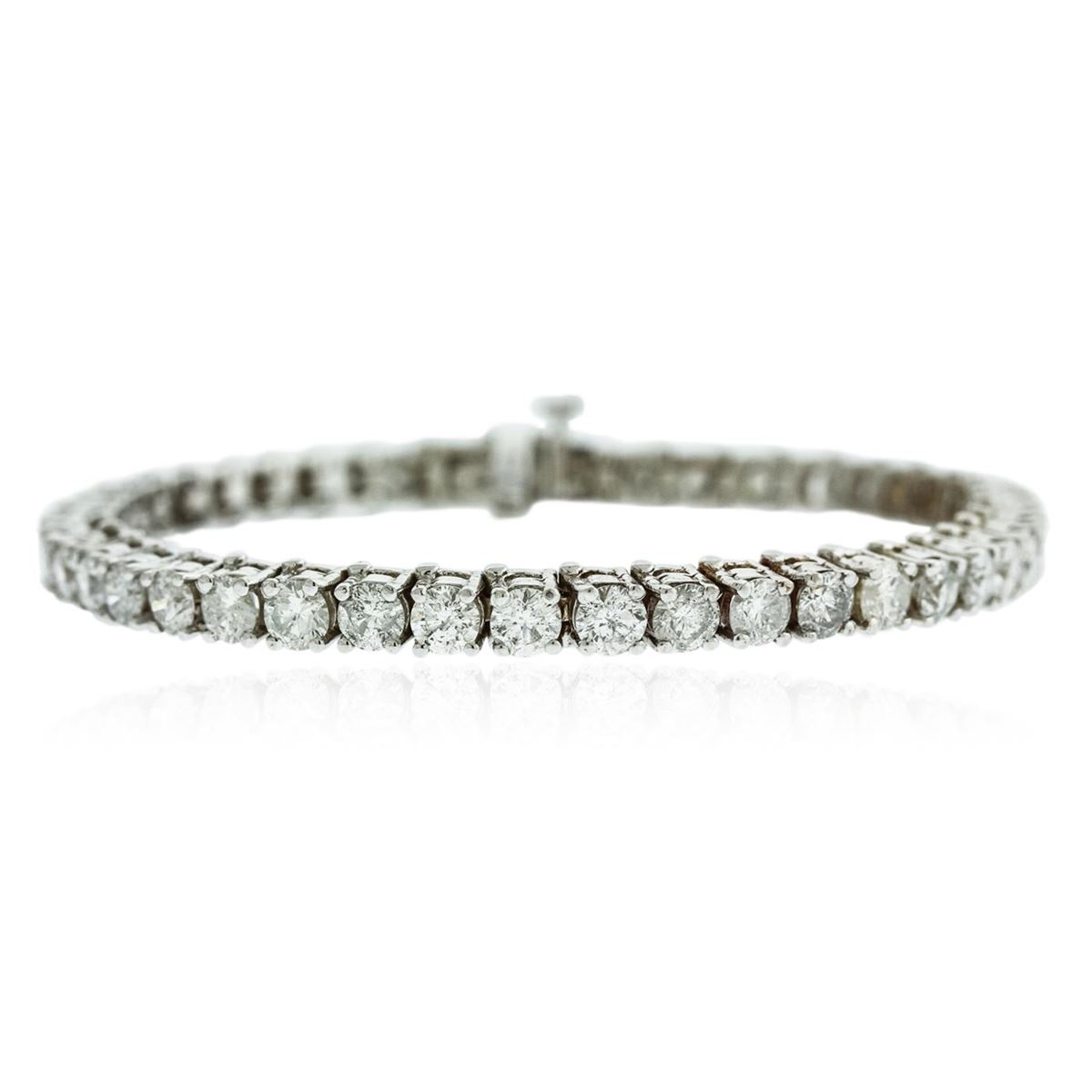 One polished, stamped, and electronically tested solid 14KT White Gold bracelet mounted with 45 genuine round diamonds weighing 9.25 carats. The bracelet is finished with a tension lock clasp and lever lock safety clasp. The bracelet measures 7 inches in length and weighs 18.4 grams, condition is new, excellent workmanship. AIGL Appraised at $24,340.00.