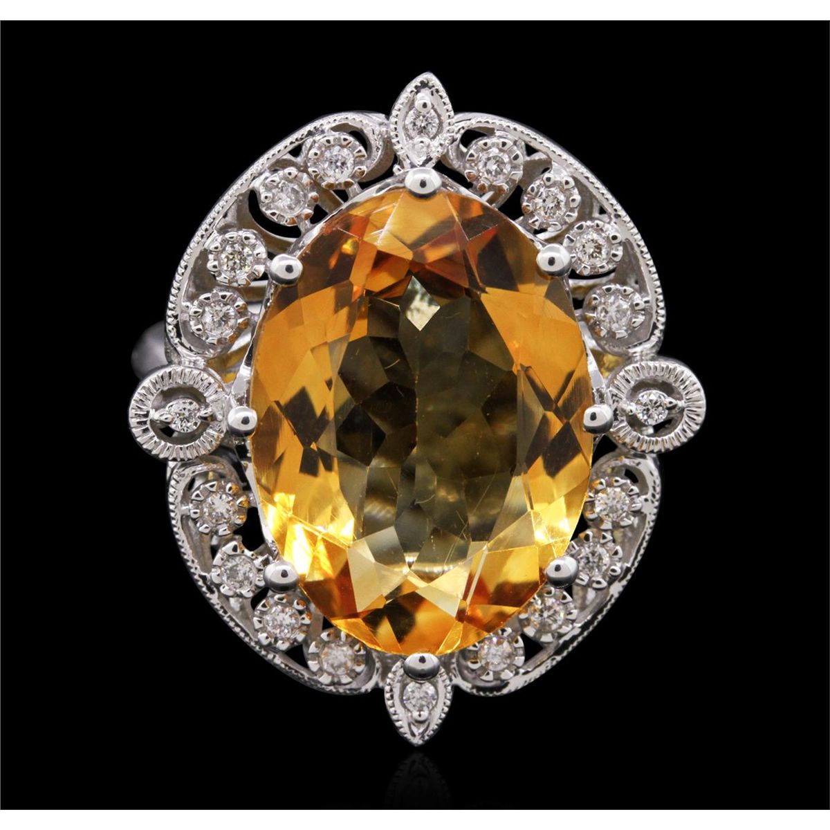 One ring featuring: 14KT white gold weighing 9.30 grams containing one citrine center stone with a total weight of 9.70ct and diamonds with a total weight of 0.24cts.