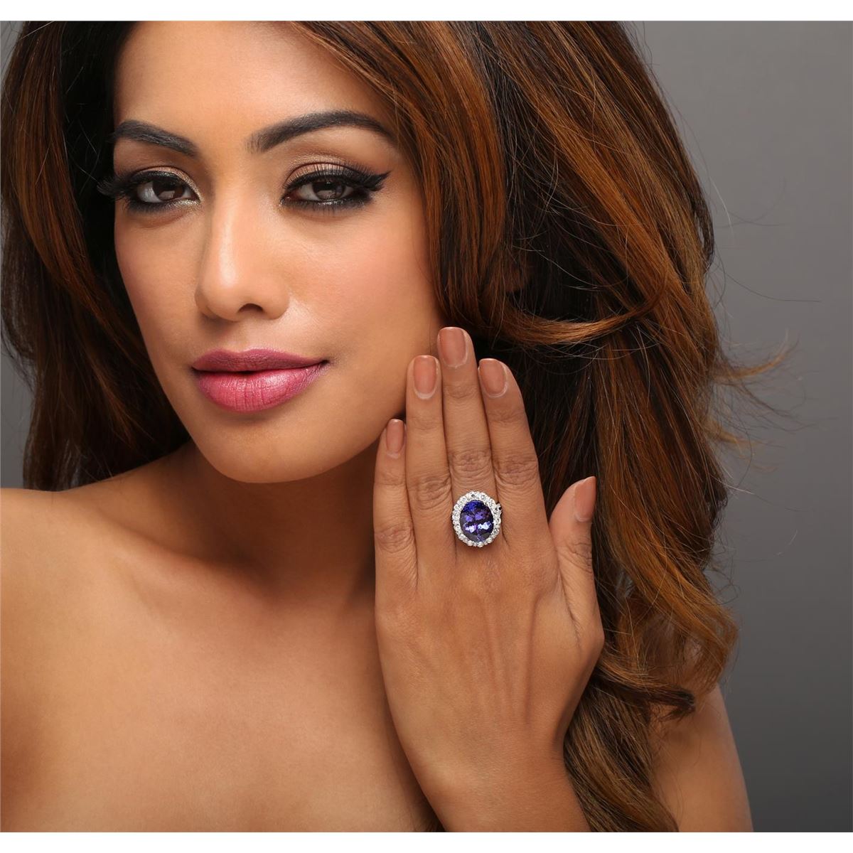 One ring featuring: 14KT white gold weighing 4.95 grams containing one tanzanite center stone with a total weight of 9.78ct and 242 round diamonds with a total weight of 2.35cts.