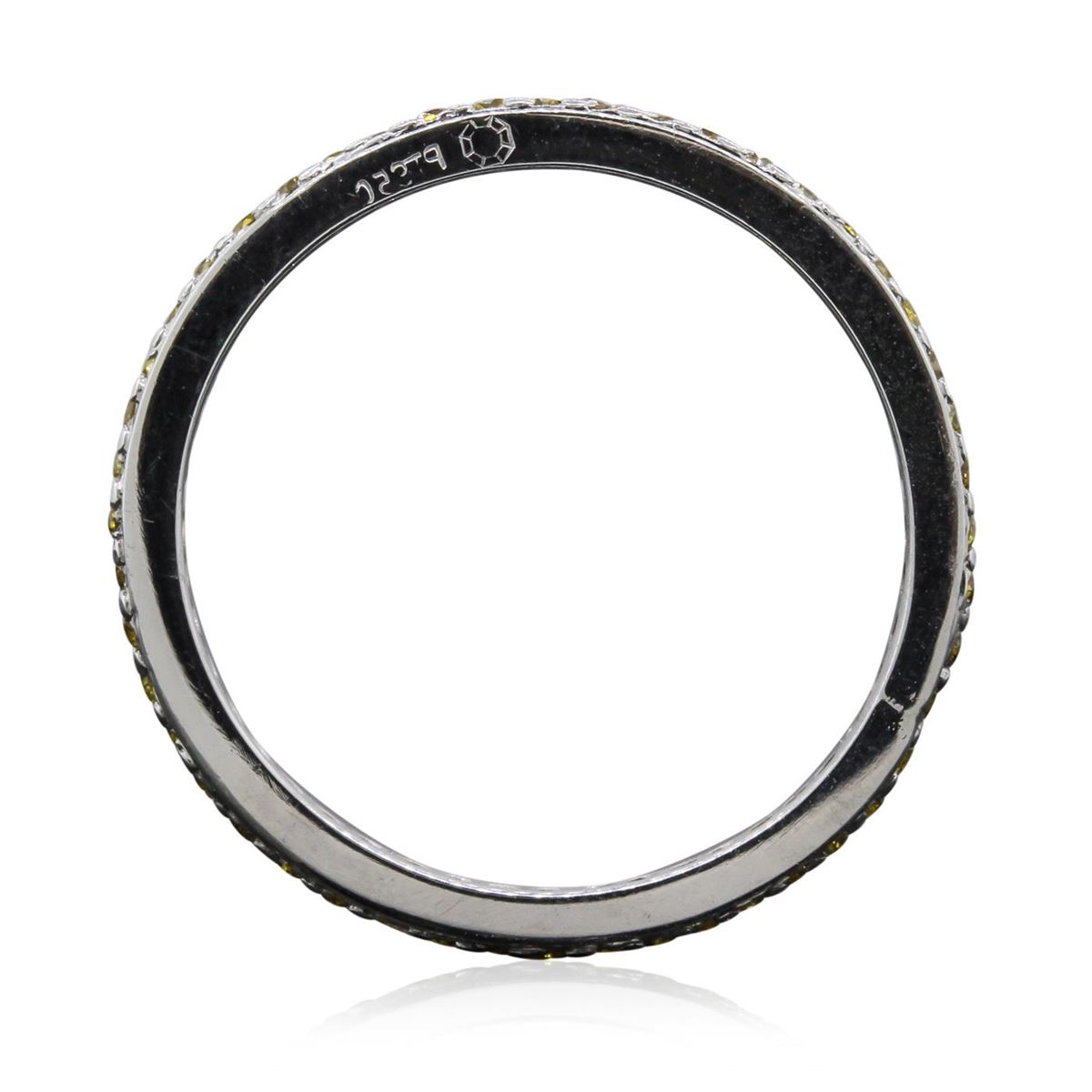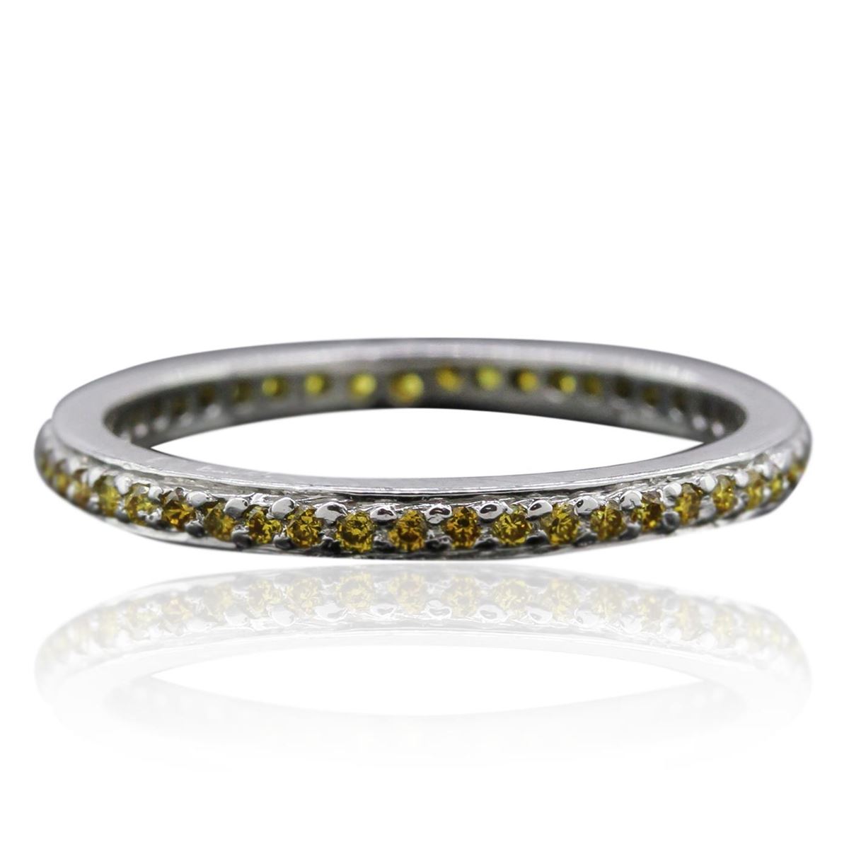 One eternity band featuring: 14KT White Gold and Pave Set Round Treated Yellow Diamonds.