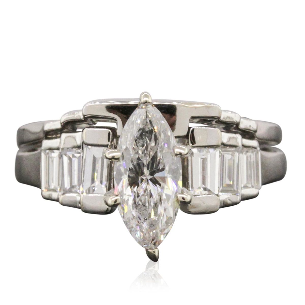 One ring featuring: 14KT White Gold with a total weight of 6.70 grams, (6) diamonds with a total weight of 0.70ctw, and one center diamond with a total weight of 1.00ct. Center diamond EGL Appraised at $9,800.00.