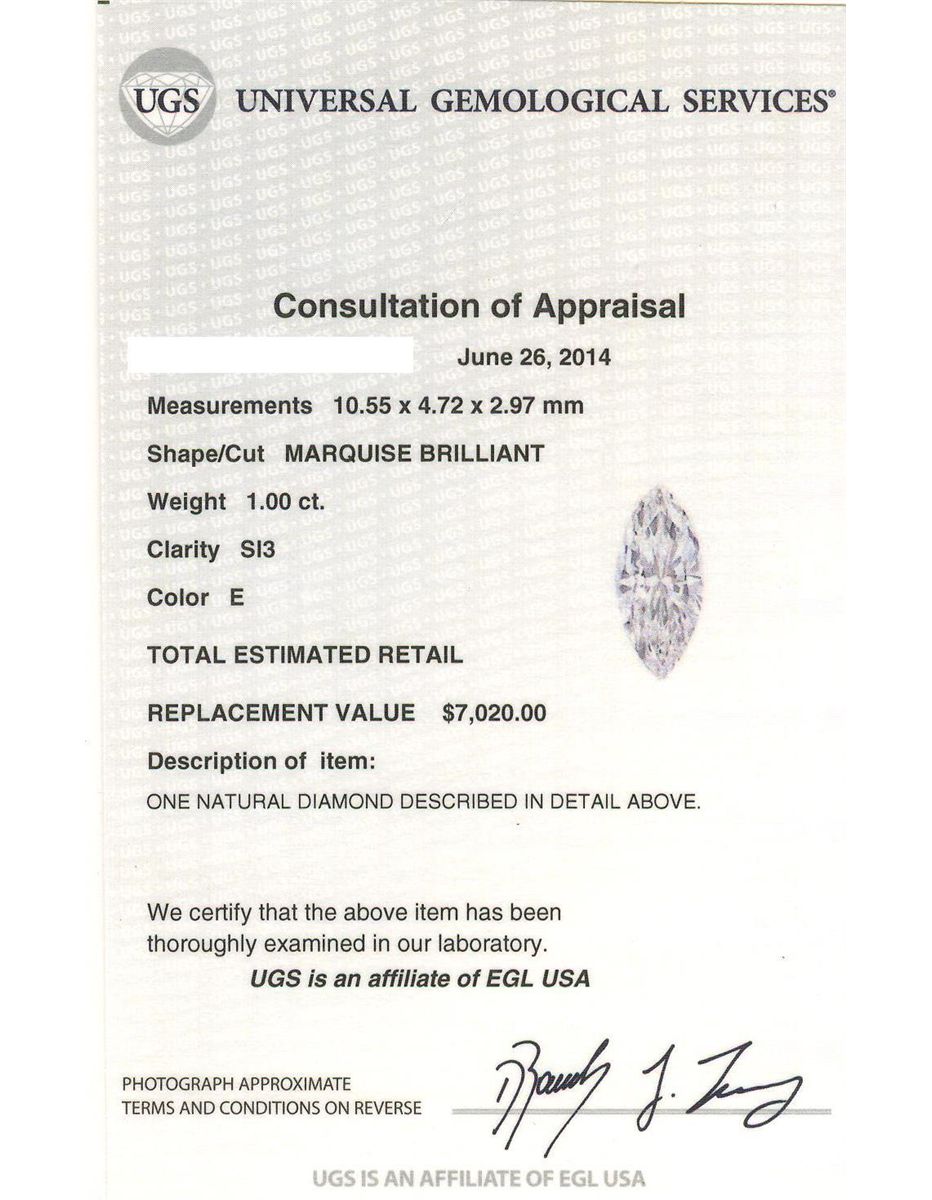 Regarding Appraised Jewelry, Watches and Loose Stones –