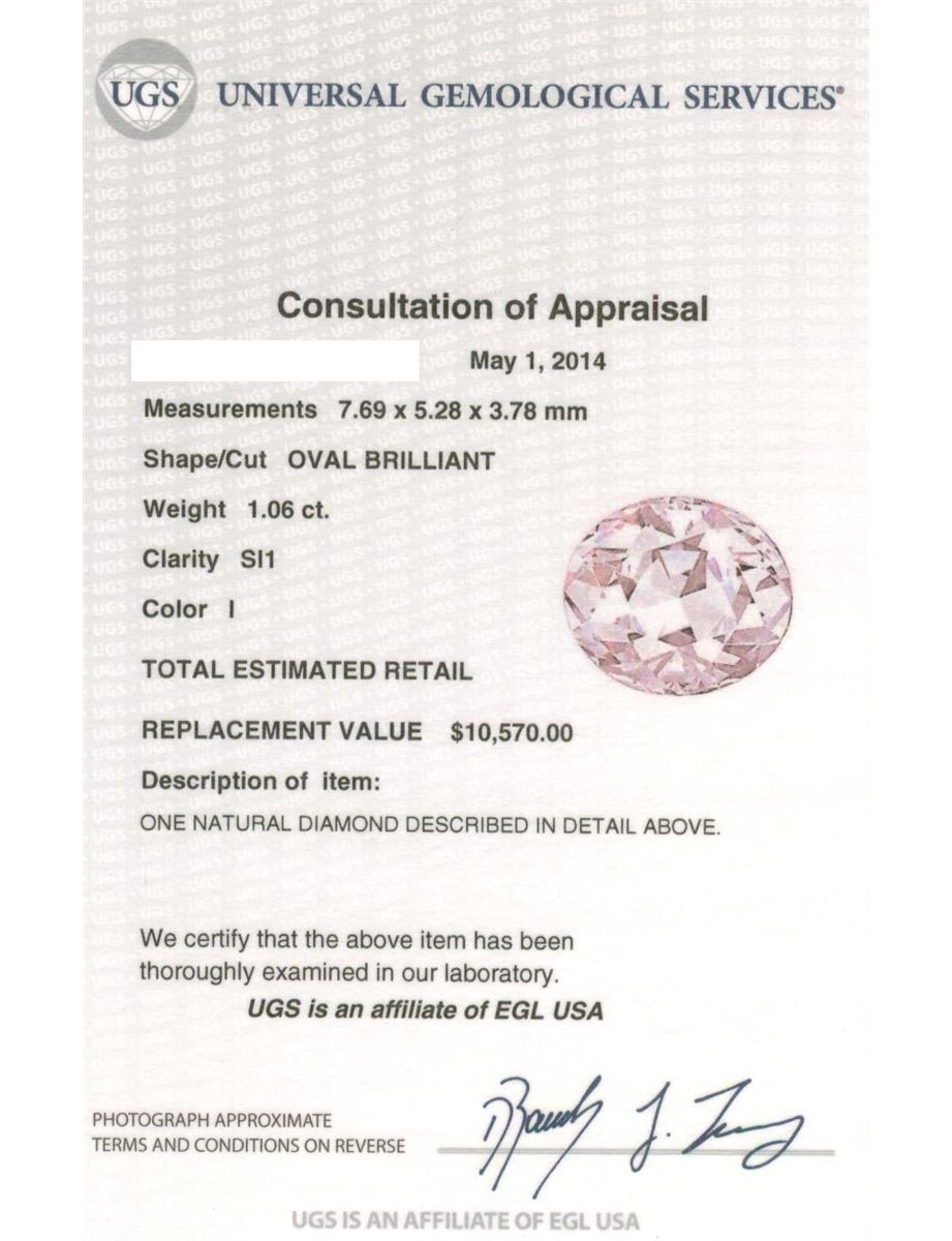 Regarding Appraised Jewelry, Watches and Loose Stones –