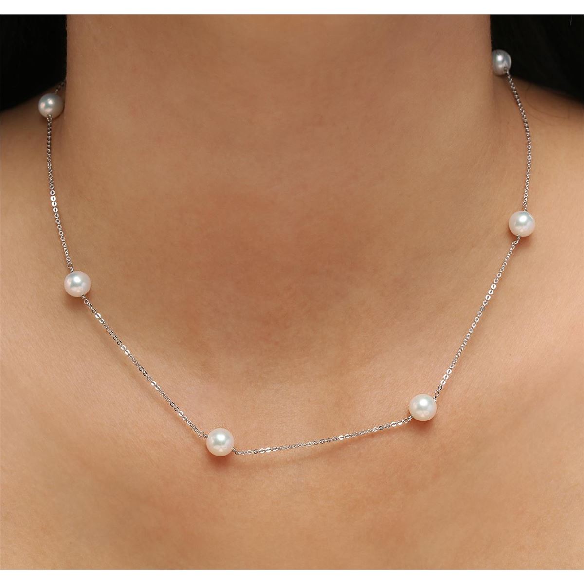 One necklace featuring: 14KT White Gold with a total weight of 3.50 grams, and Pearls.