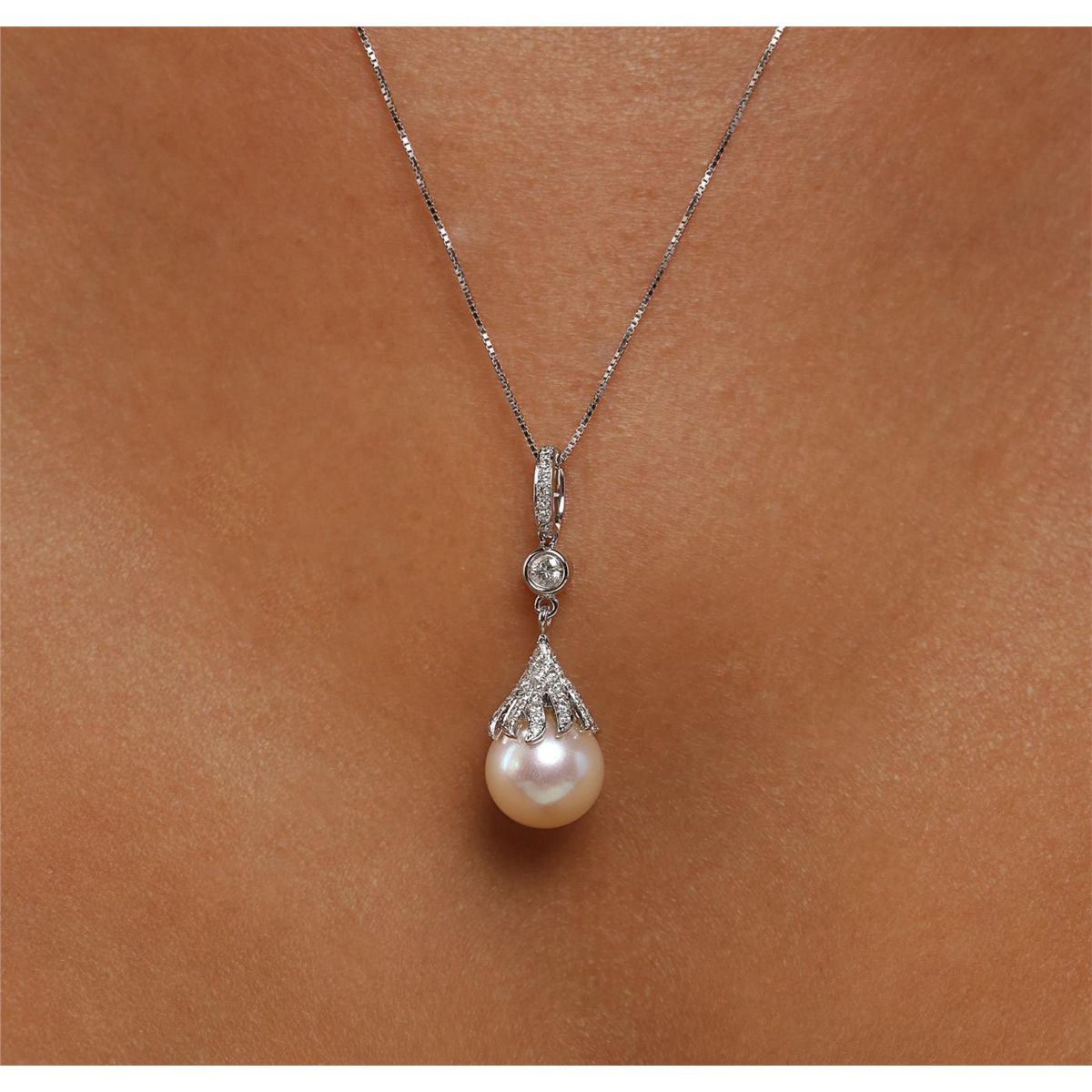 One pendant with chain featuring: 14KT white gold weighing 3.60 grams containing one pearl measuring 9.50mm and diamonds with a total weight of 0.24cts.