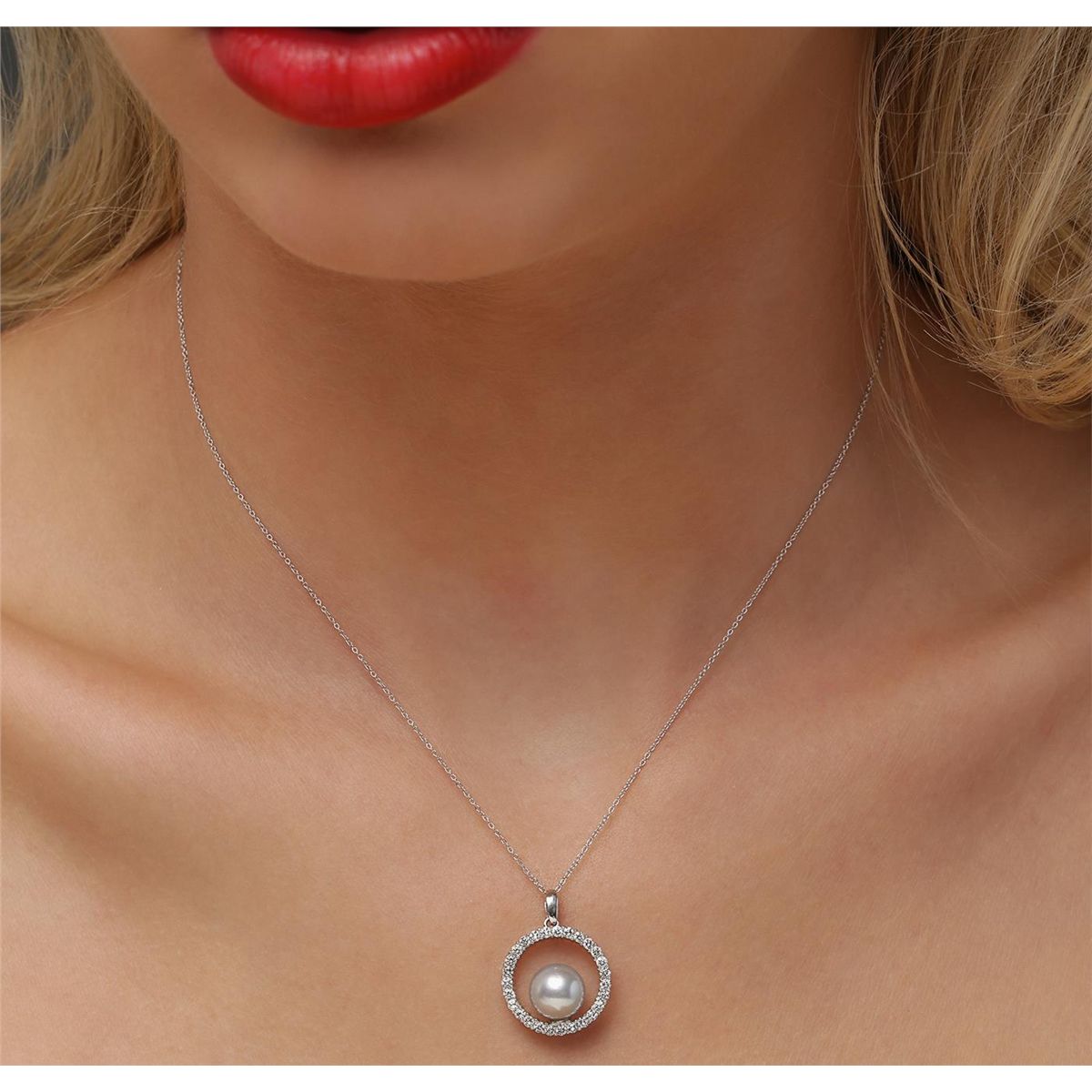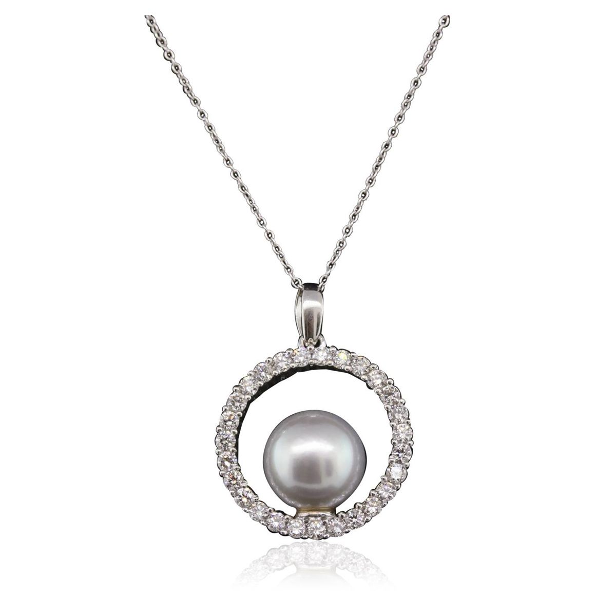 One Pendant featuring: 14KT White Gold with a total weight of 3.60 grams, Pearl, and Diamonds with a total weight of 0.70ctw.