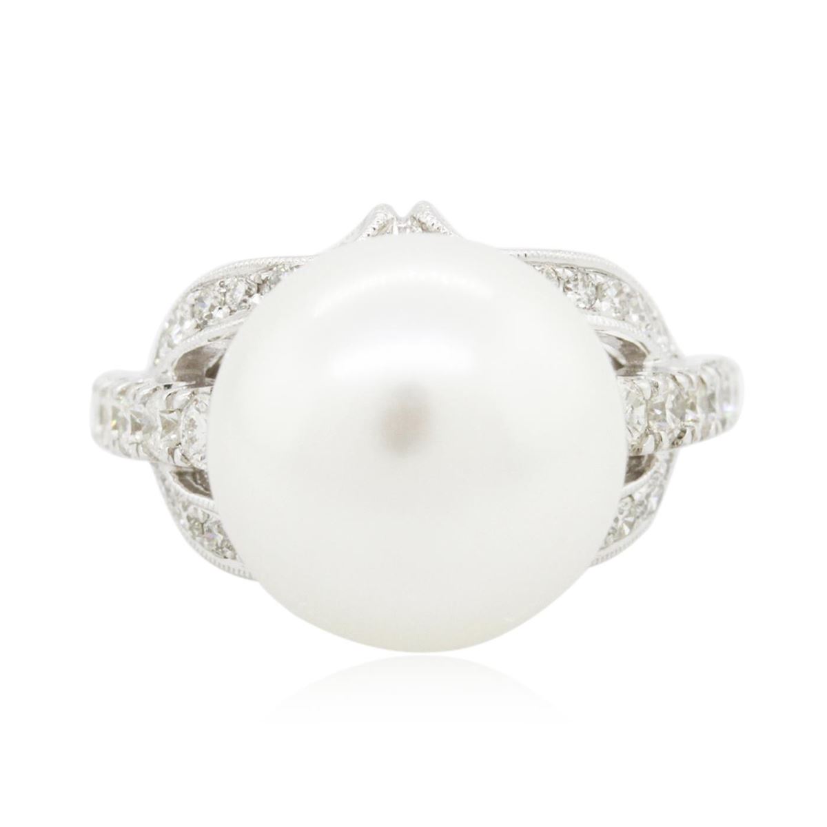 One ring featuring: 14KT white gold weighing 6.00 grams containing one pearl measuring approximately 13.00mm and 36 round diamonds with a total weight of 1.26ct.