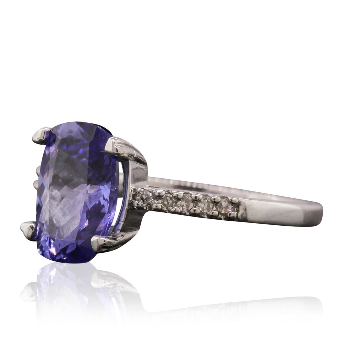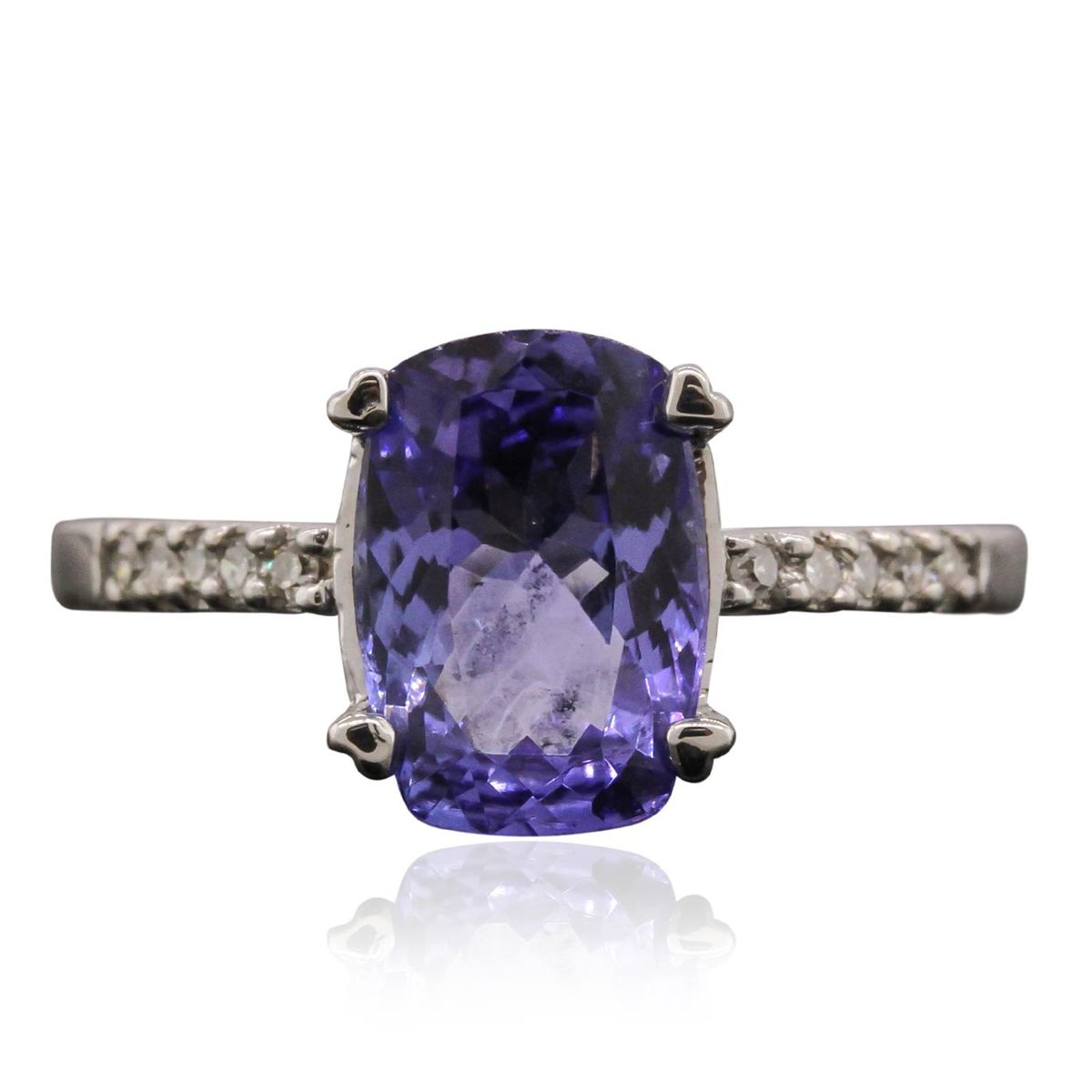 One ring featuring: 14KT White Gold, Tanzanite, and Diamonds. Item weighs a total of 2.43 grams.