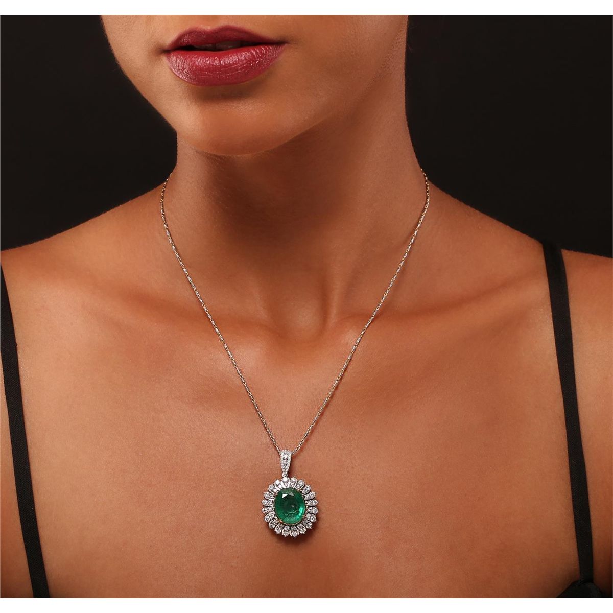 One electronically tested 14KT white and yellow gold Ladies combination cast & assembled pendant & chain 17.5" long, light open cable link with a lobster claw clasp with a bright polish finish. Condition is new. Identified with markings of "14K". Containing: One prong set oval modified mixed cut natural emerald, measuring 14.90 x 12.50 x 7.80mm, exact weight 9.42ct., clarity is moderately included, type III, medium light, very slightly grayish, very slightly bluish green color, (GIA vslbG 4/3), cut is good. Colored gemstones are presumed to have been subjected to commonly used and possible undetectable color/clarity enhancement processes. Twenty prong set round brilliant cut diamonds, measuring 2.40 - 2.40 x 1.44mm (depth est.) approximate. Total Weight of 20 Stones = 1.20ct. Clarity: SI-2 to I-1. Color: I - J, Cut is Good. Twenty-Three prong set round brilliant cut diamonds, measuring 1.70 - 1.70 x 1.02mm (depth est.) approximate. Total Weight of 23 Stones = 0.41ct. Clarity: I-1 to I-2. Color: J - K, Cut is Good. Twenty-One prong set round brilliant cut diamonds, measuring 1.00 - 1.00 x 0.60mm (depth est.) approximate. Total Weight of 21 Stones = 0.11ct. Clarity: I-1. Color: I - J, Cut is Good. Total Weight of Colored Stones 9.42ct. Total Weight of Diamonds 1.72ct. Total Weight of Pendant & Chain 13.50 grams. GGL Appraised at $26,730.00.