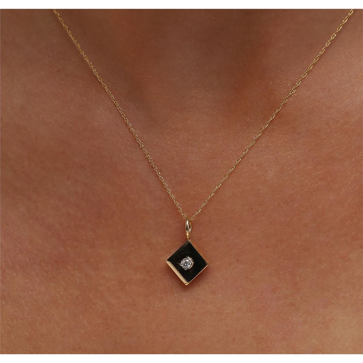 One pendant with chain featuring: 14KT yellow gold weighing 2.50 grams containing one round diamond with a total weight of 0.02ct.