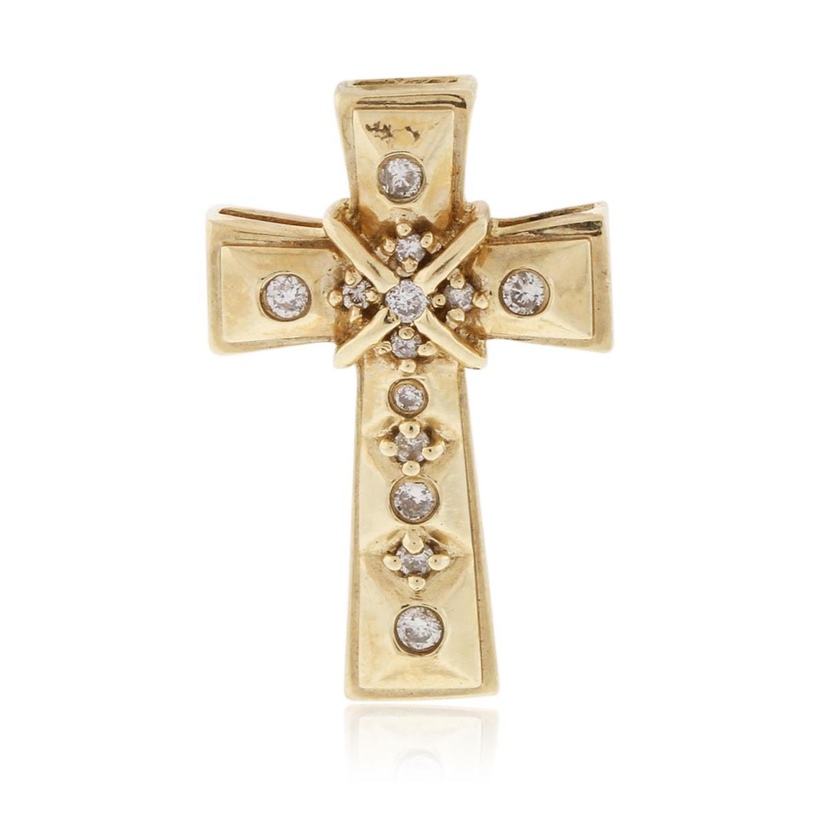One cross pendant featuring: 14KT yellow gold weighing 4.00 grams containing round diamonds with a total weight of 0.09ct.