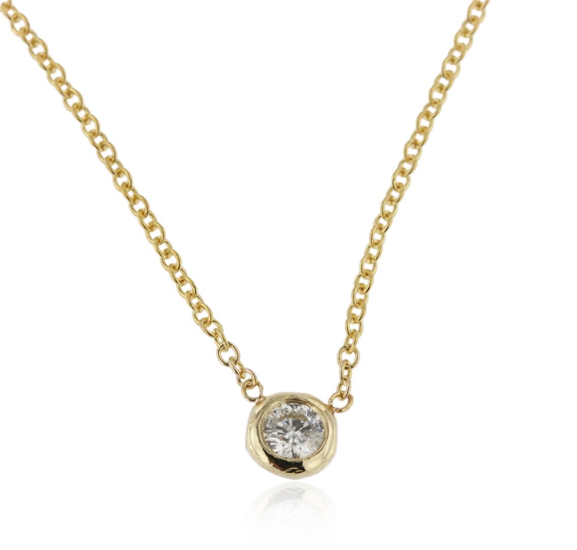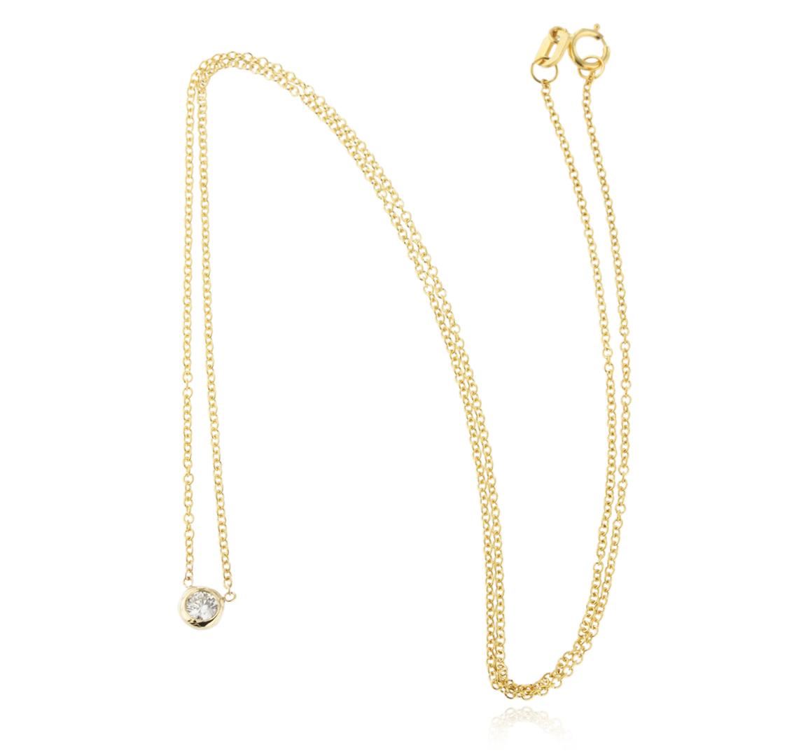 One necklace featuring: 14KT yellow gold weighing 1.65 grams and one round cut diamond weighing 0.09ct.