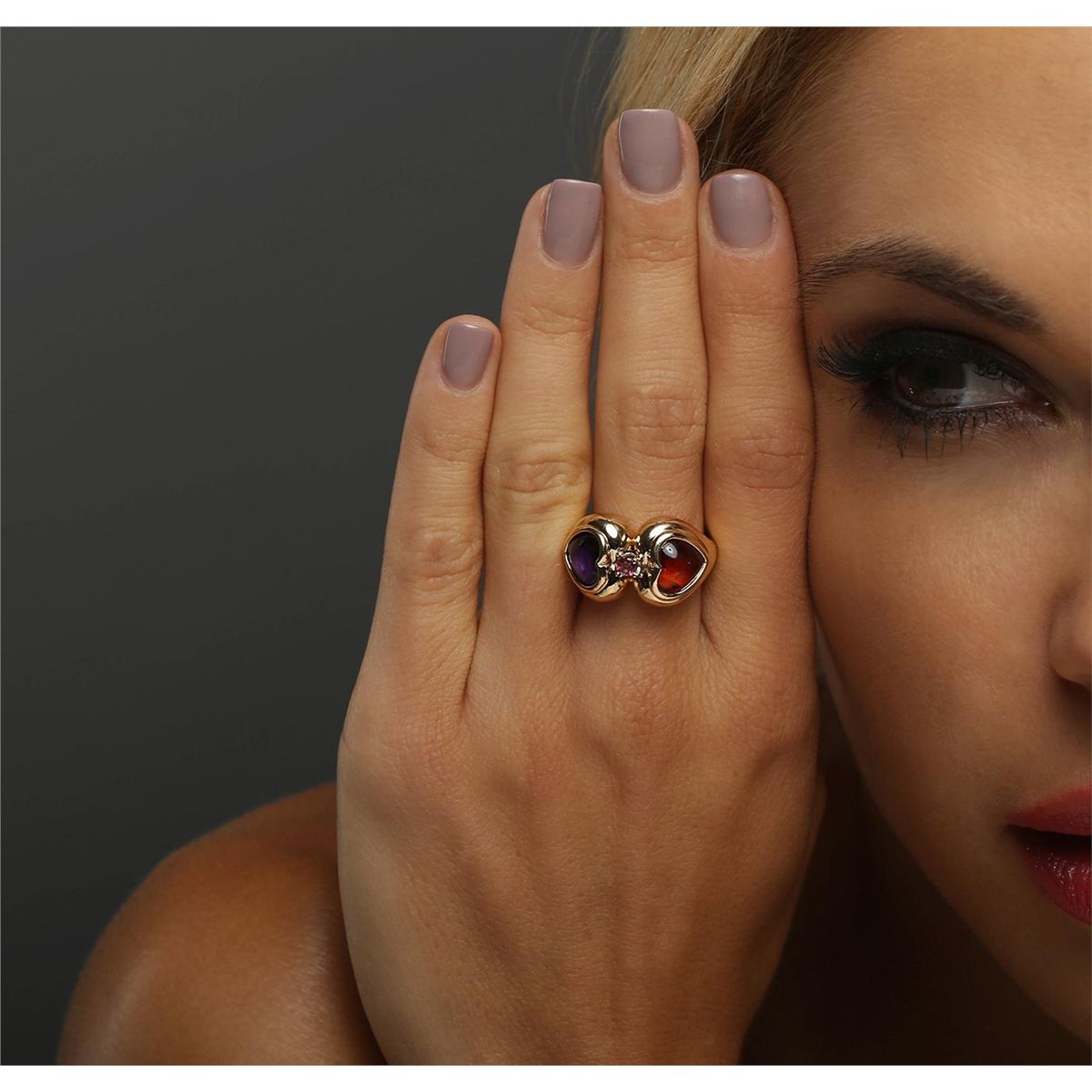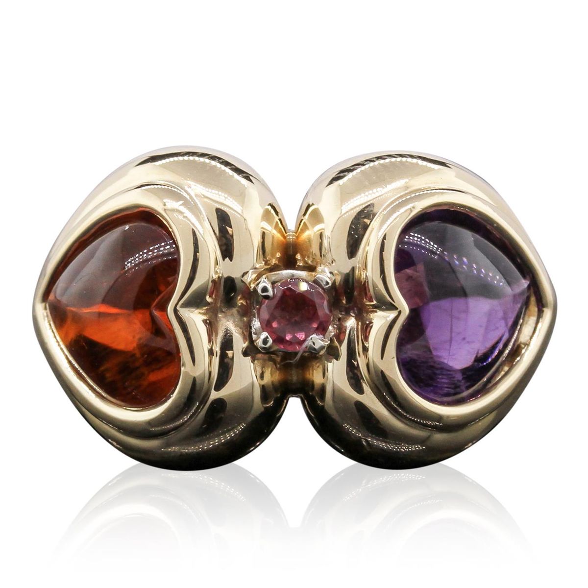 One ring featuring: 14KT Yellow Gold with a total weight of 11.20 grams, Sapphire with a total weight of 0.10ct, citrines with a total weight of 3.00ctw, and amethyst.