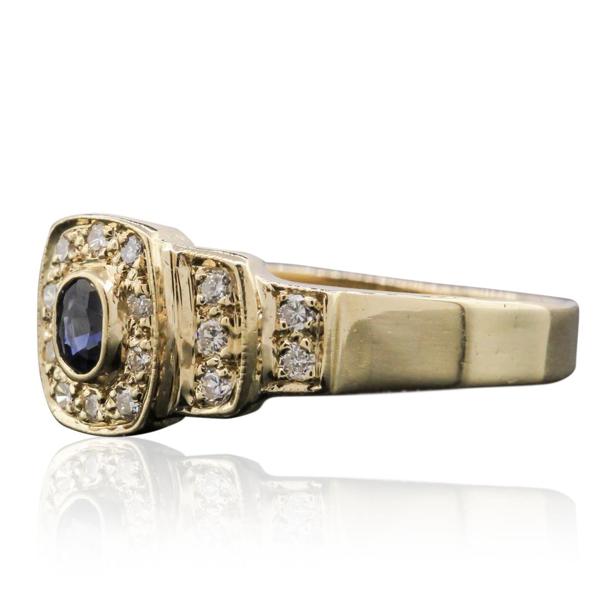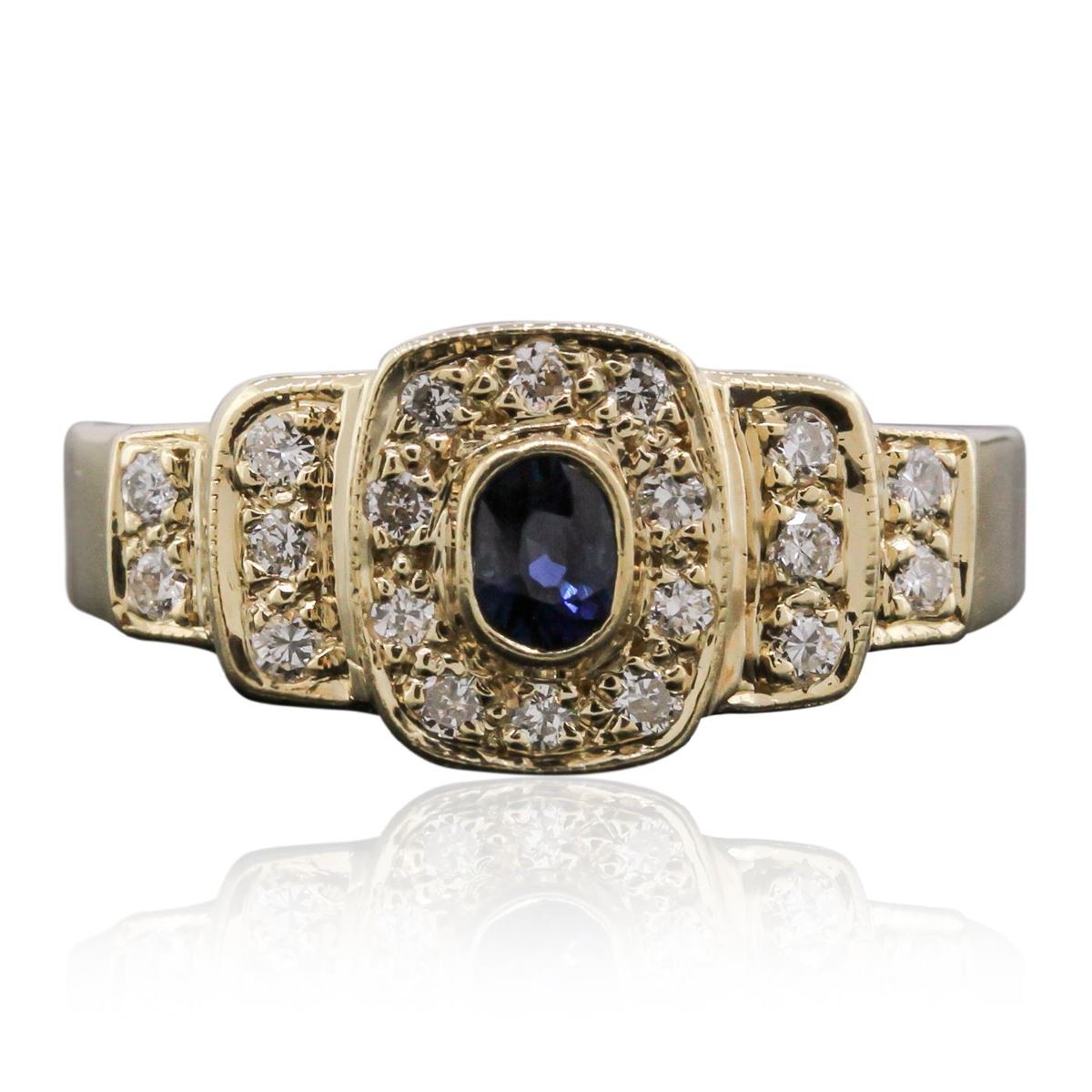 One ring featuring: 14KT Yellow Gold with a total weight of 3.00 grams, Sapphire with a total weight of 0.10ct, and diamonds with a total weight of 0.35ctw.