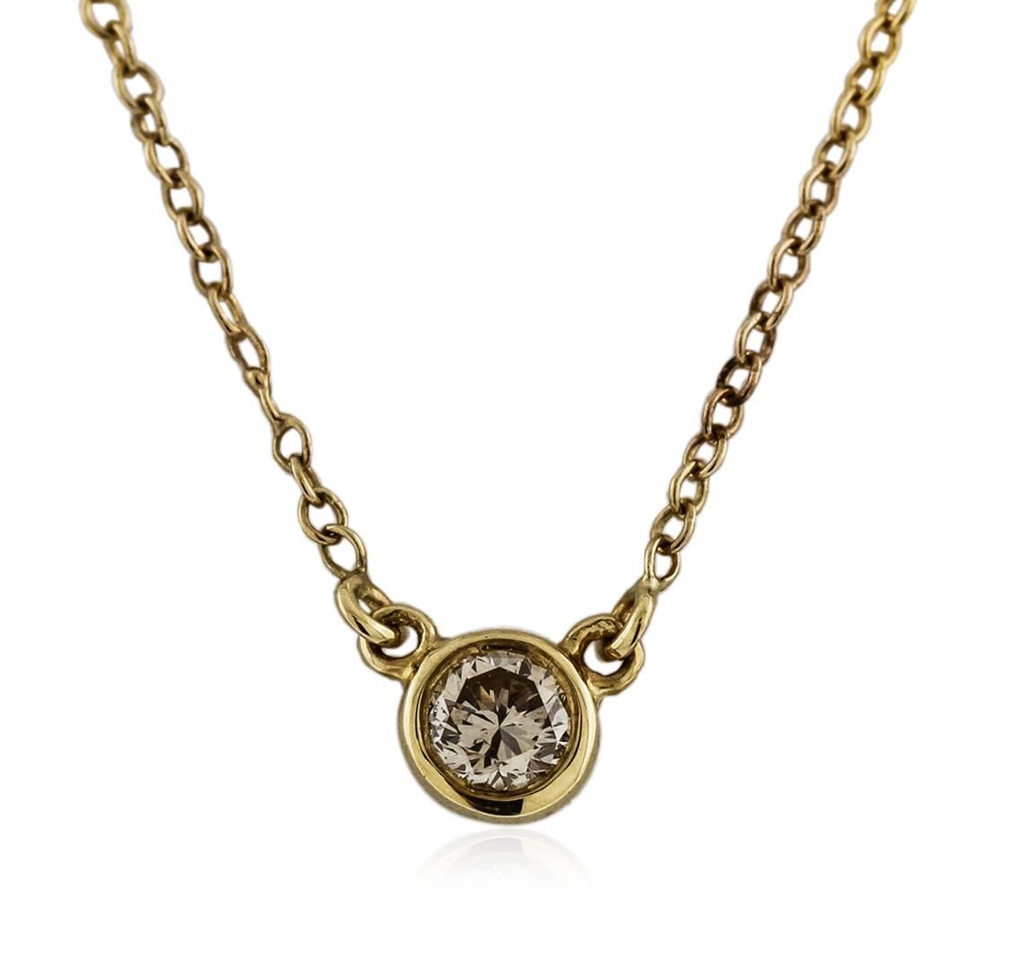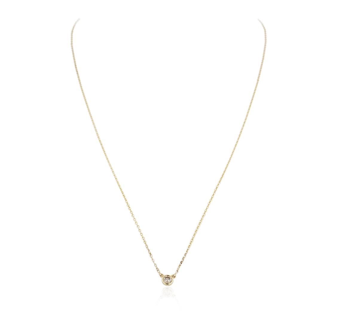 One solitaire necklace featuring: 14KT yellow gold weighing 2.10 grams containing one bezel set round diamond with a total weight of 0.15ct.