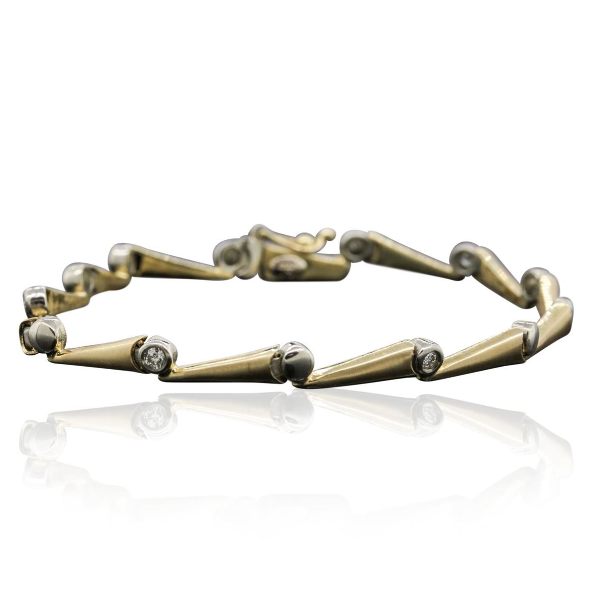 One Bracelet featuring: 9.50 grams of 14KT Yellow Gold, and Diamonds with a total weight of 0.20ctw.