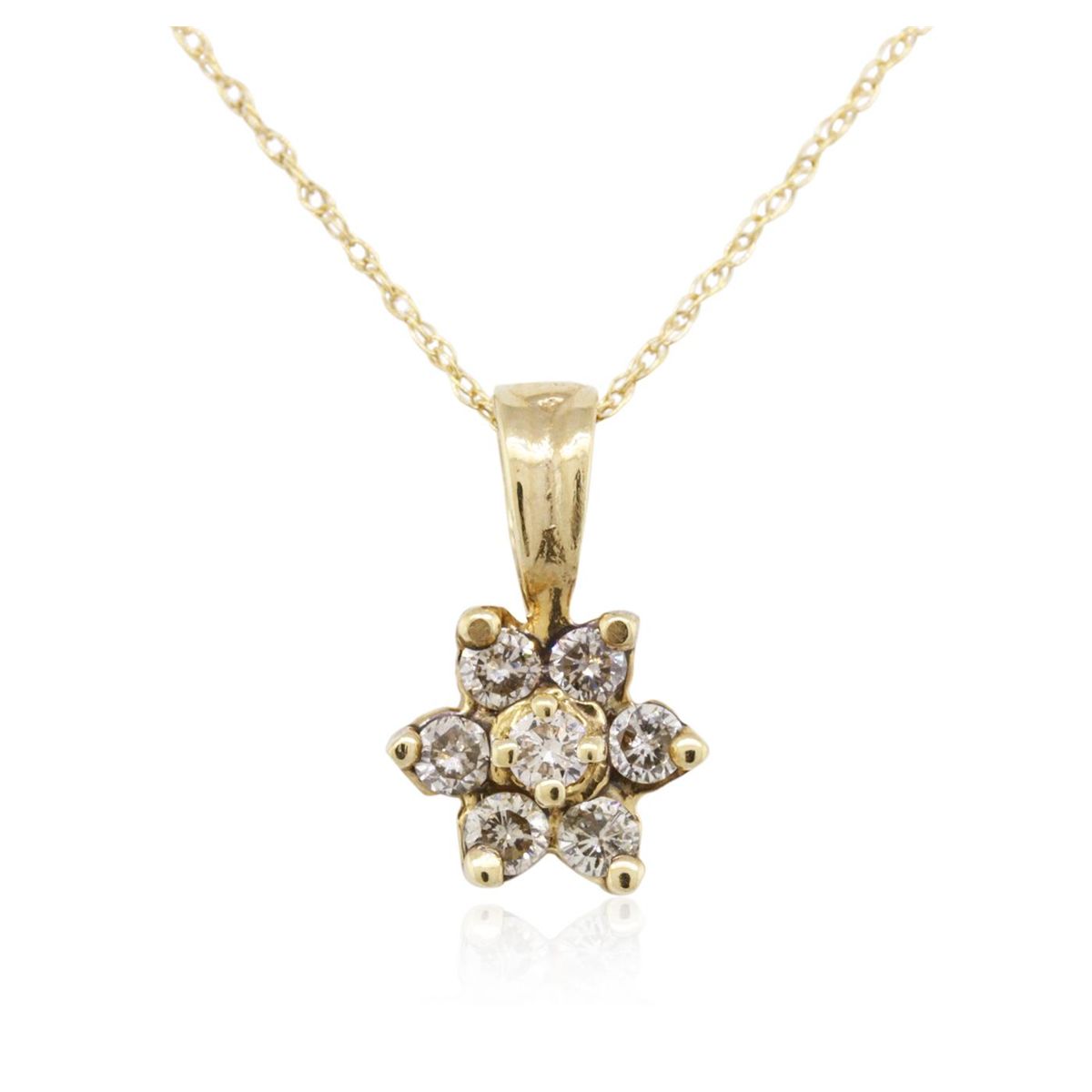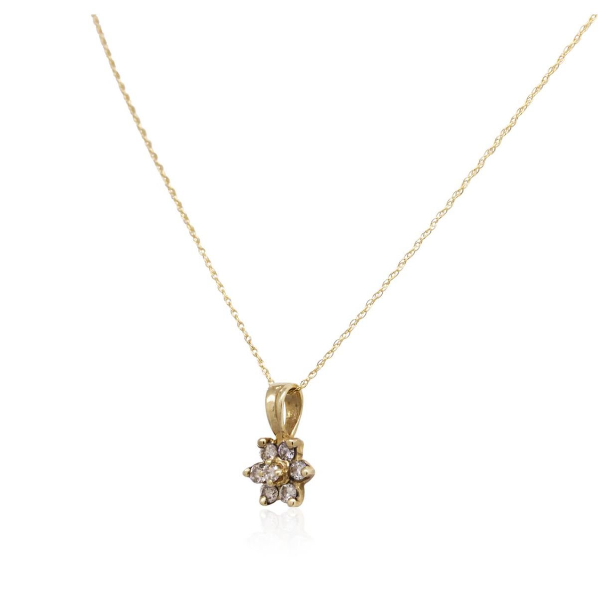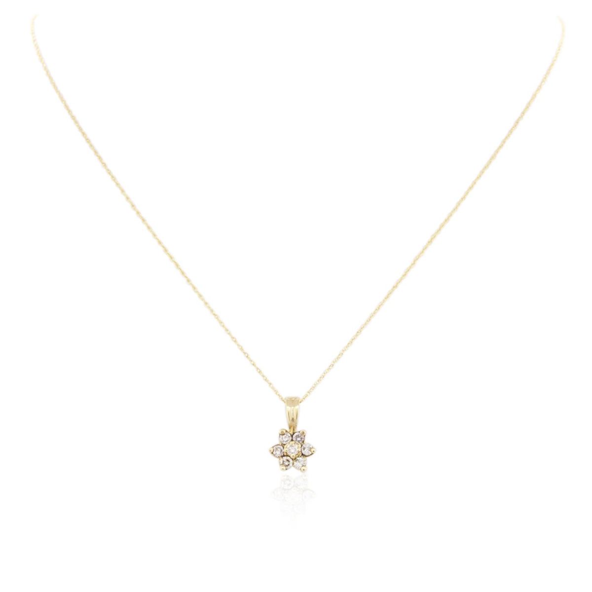 One pendant with chain featuring: 14KT yellow gold weighing 1.10 grams containing round cut diamonds with a total weight of 0.21cts.