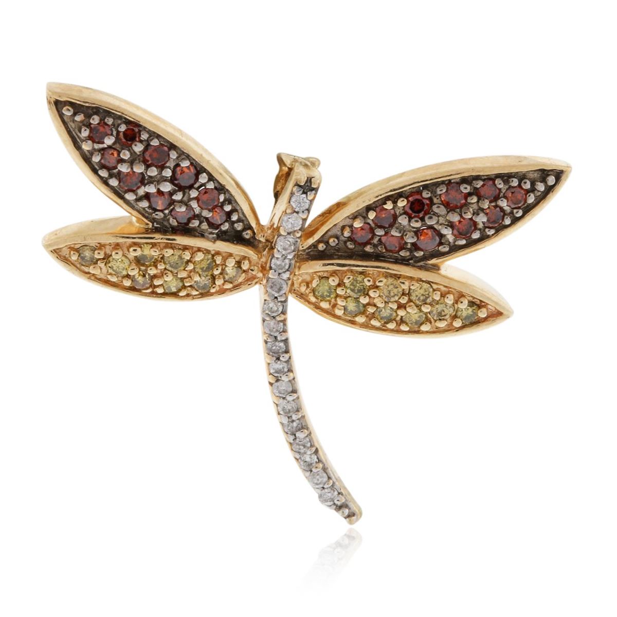 One dragonfly pendant featuring: 14KT yellow gold weighing 3.30 grams containing rubies with a total weight of 0.22ct, yellow diamonds with a total weight of 0.20ct, and white diamonds with a total weight of 0.21ct.