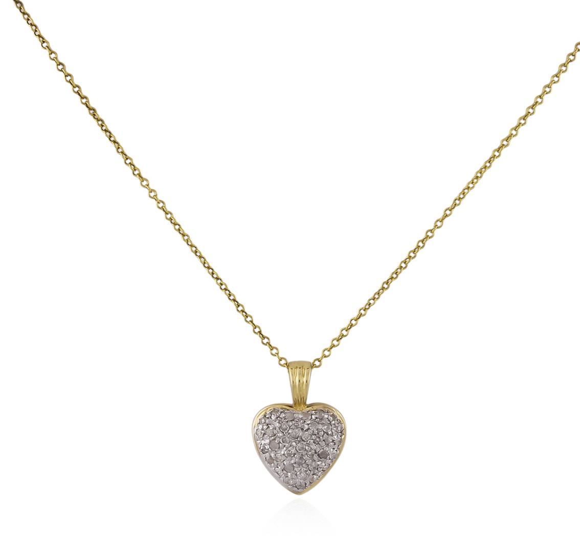 One heart pendant with chain featuring: 14KT yellow gold weighing 2.50 grams containing diamonds with a total weight of 0.25ct.