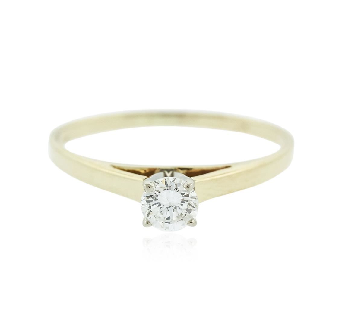 One ring featuring: 14KT yellow gold weighing 1.56 grams containing one round cut diamond solitaire weighing 0.25ct.
