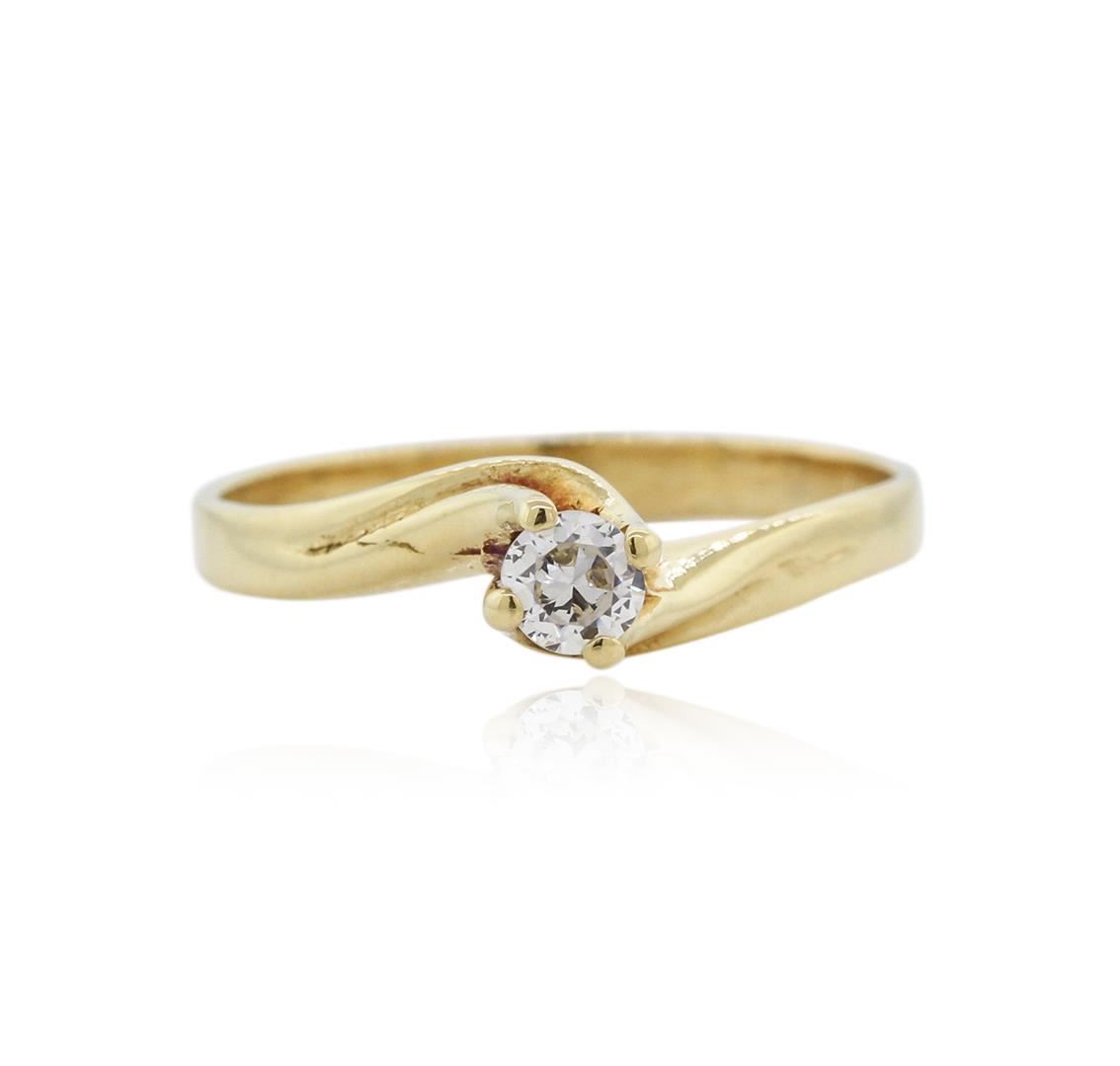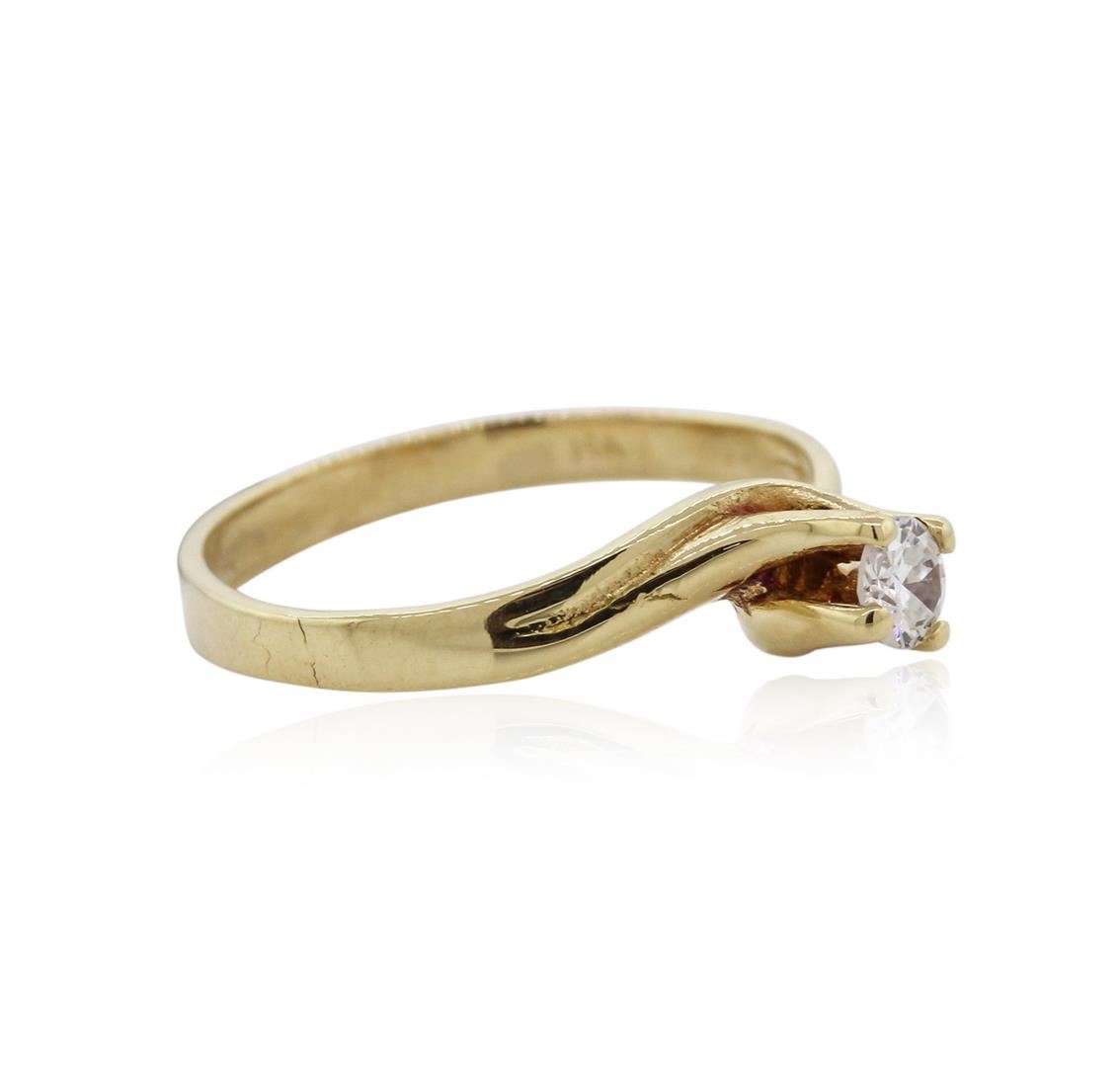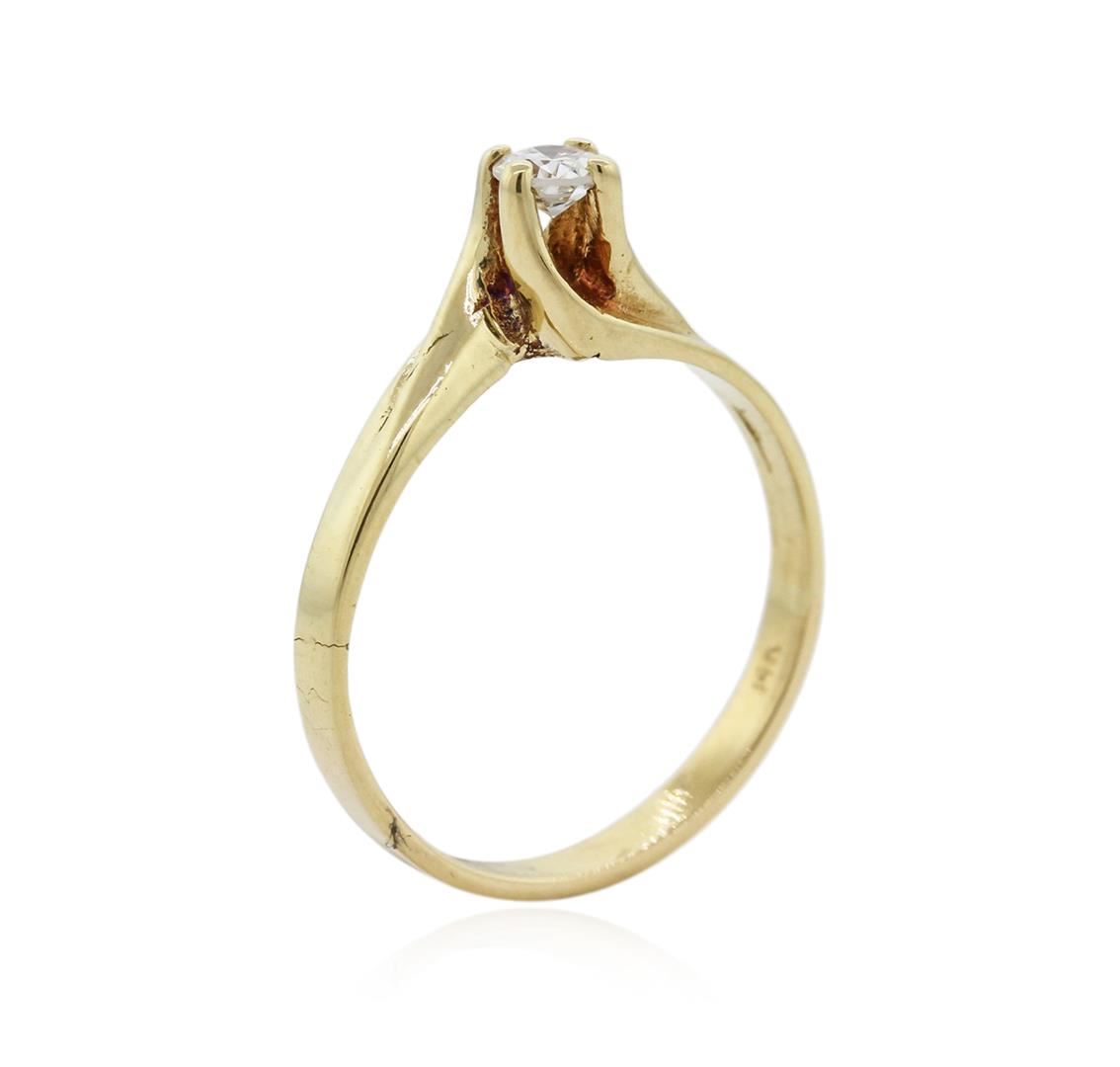 One solitaire ring featuring: 14KT yellow gold weighing 2.50 grams containing one prong set round diamond with a total weight of 0.25ct.