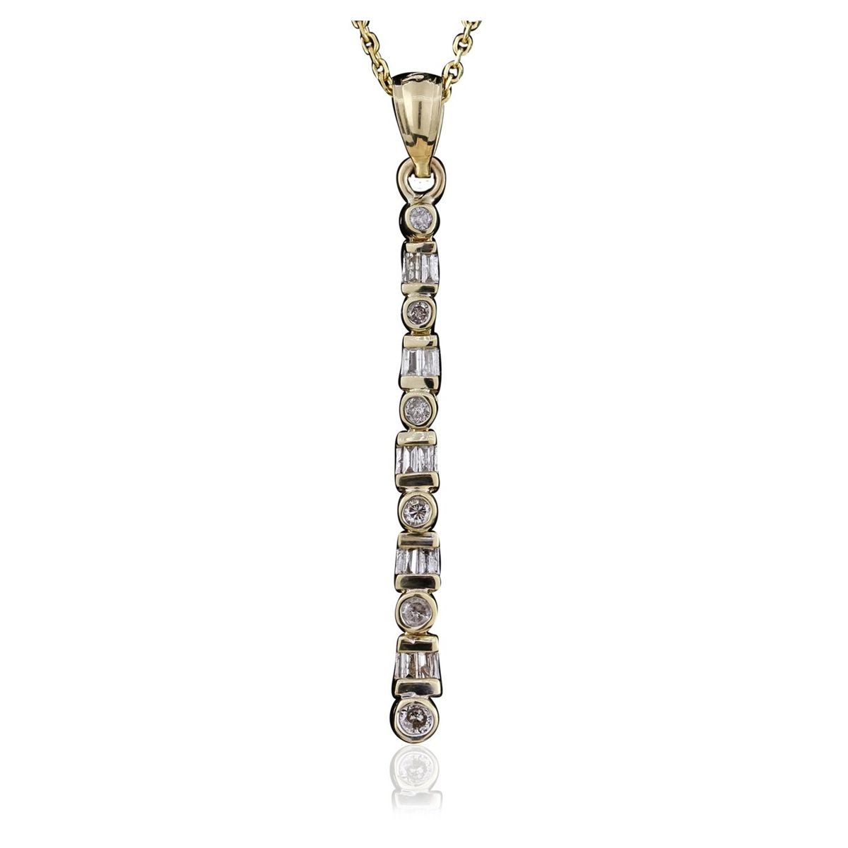 One pendant with chain featuring: 14KT Yellow Gold with a total weight of 2.80 grams, and Diamonds with a total weight of 0.30ctw.