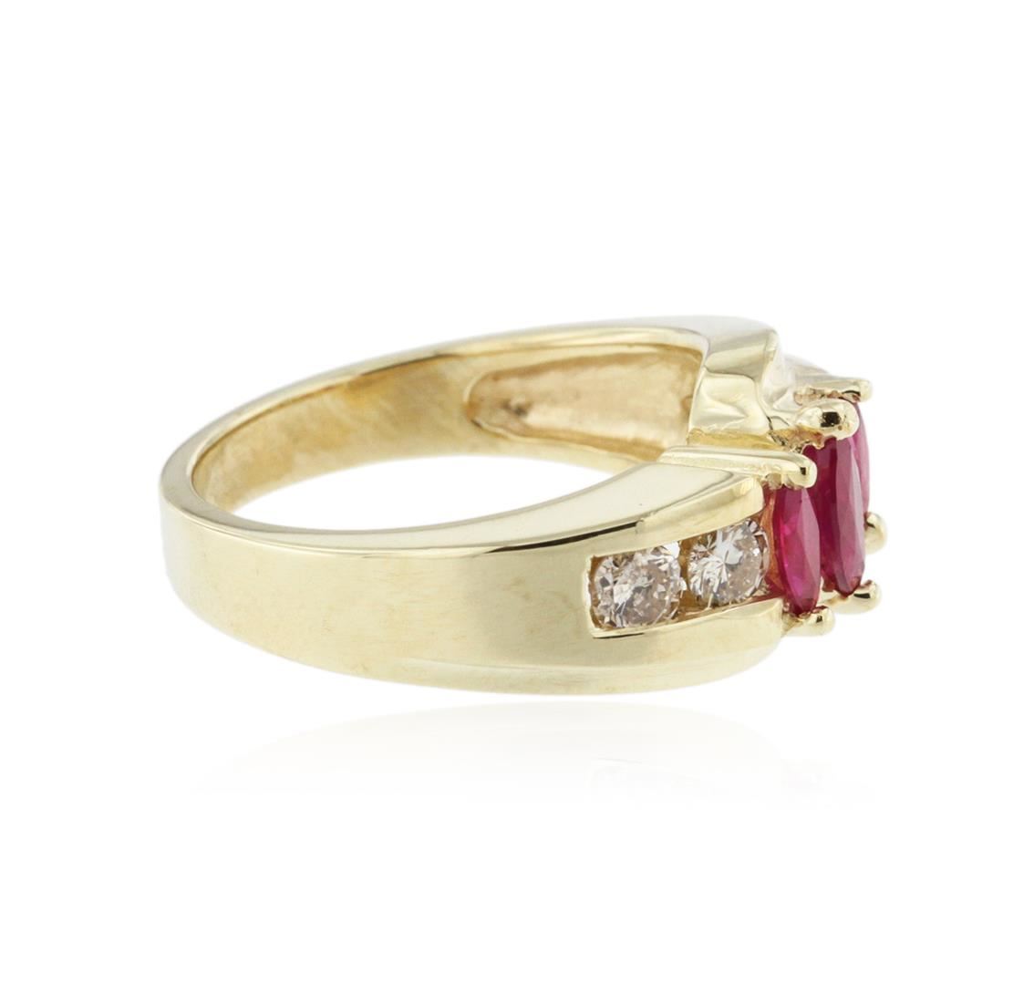 One ring featuring: 14KT yellow gold weighing 7.40 grams containing three rubies with a total weight of 0.37ct and diamonds with a total weight of 0.65ct.