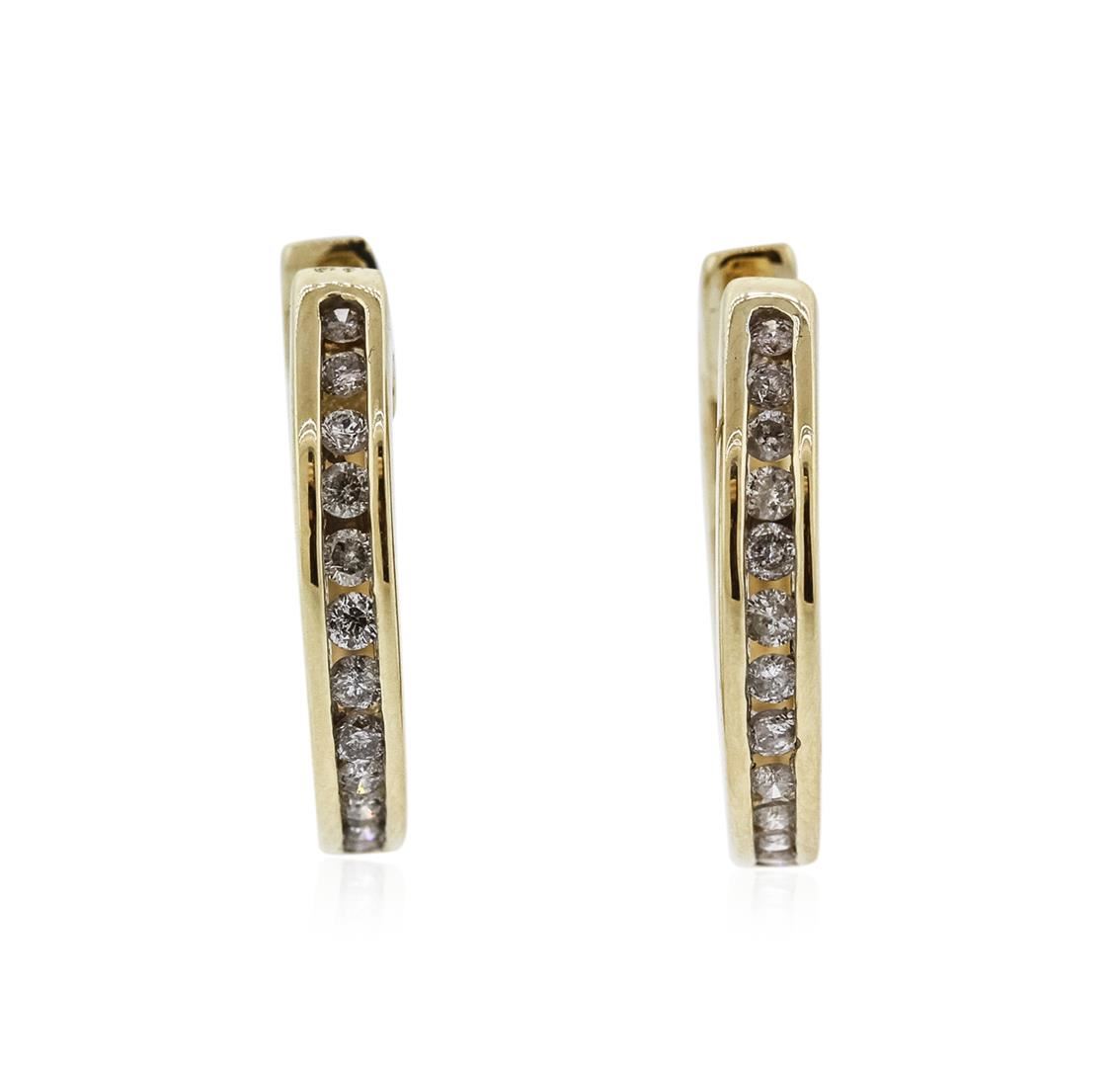 One pair of hoop earrings featuring: 14KT yellow gold weighing 5.40 grams containing diamonds with a total weight of 0.39ct.