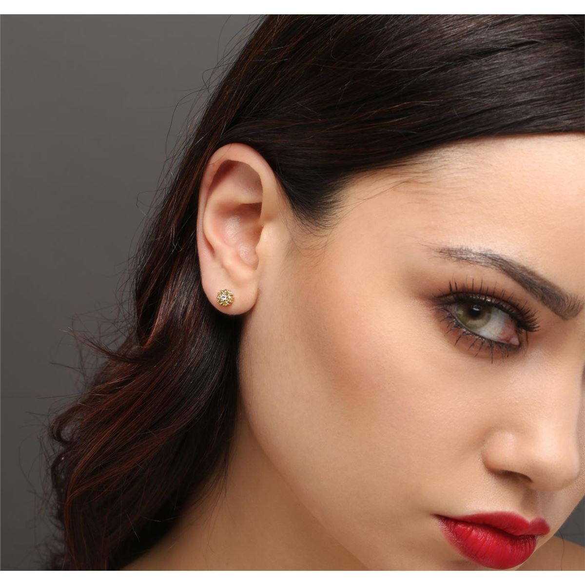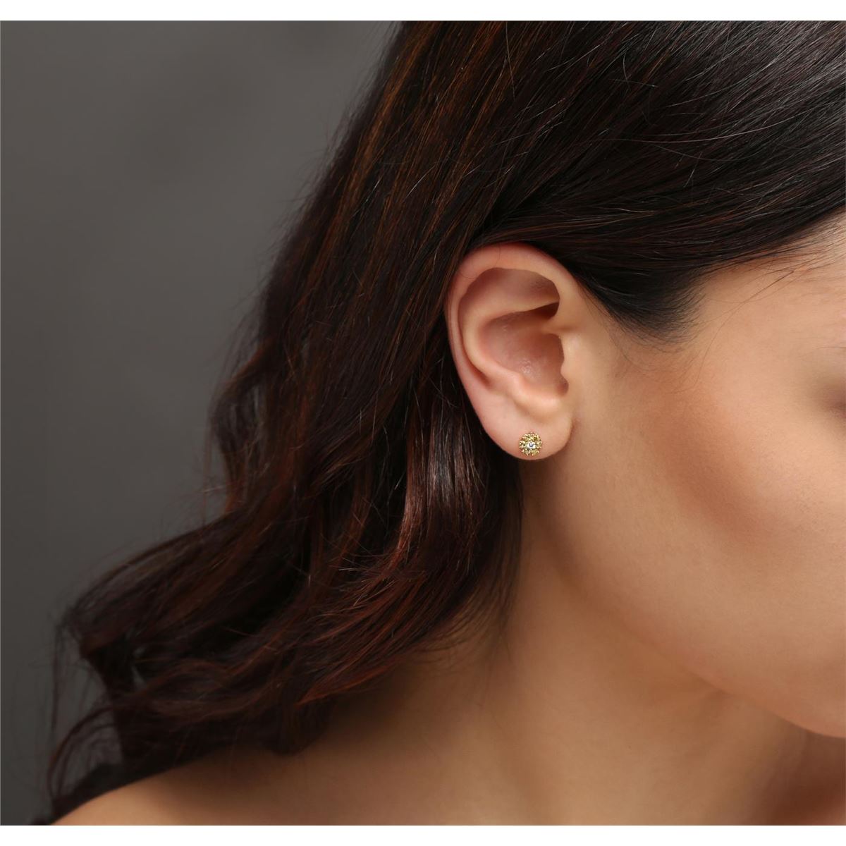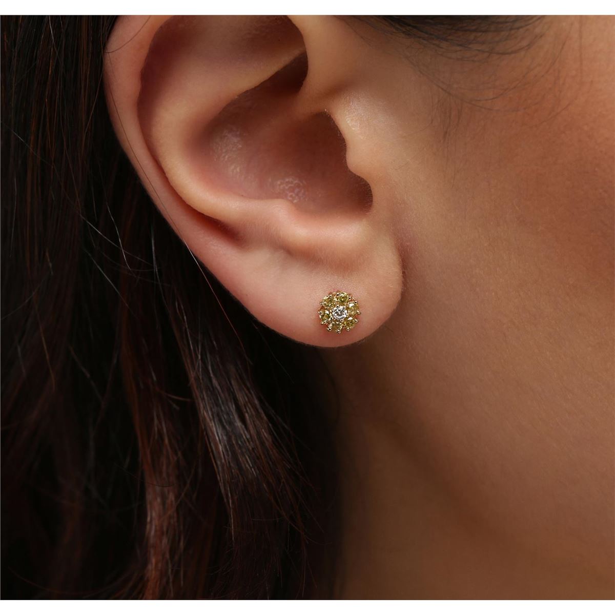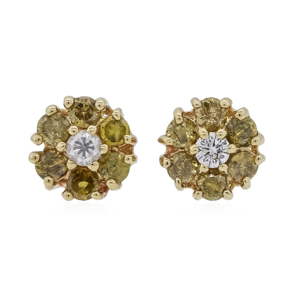 One pair of stud earrings featuring: 14KT yellow gold weighing 1.90 grams containing prong set round white/yellow diamonds with a total weight of 0.42ct.