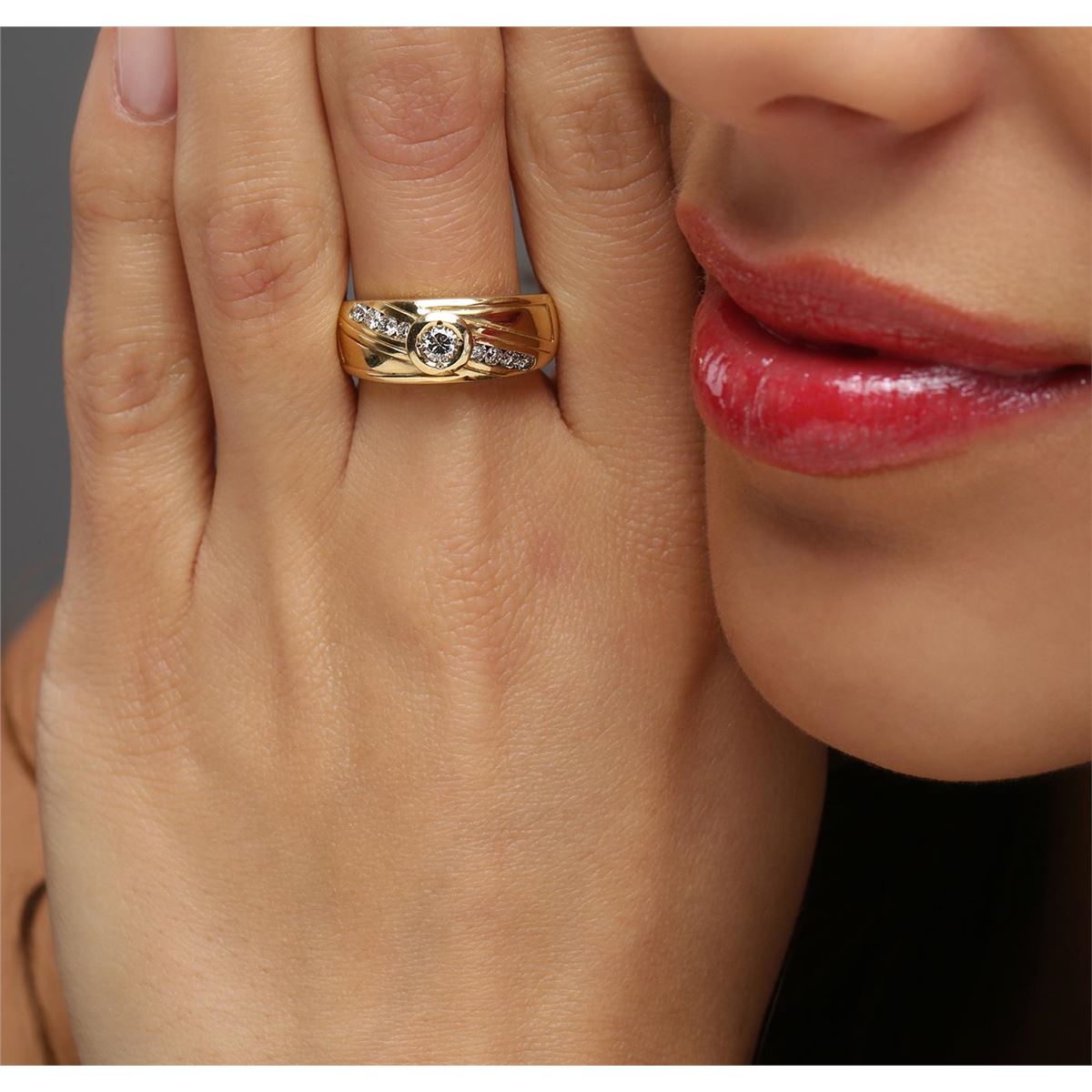 One ring featuring: 14KT yellow gold weighing 5.60 grams containing one round diamond center stone with a total weight of 0.17ct and round diamonds with a total weight of 0.28cts.