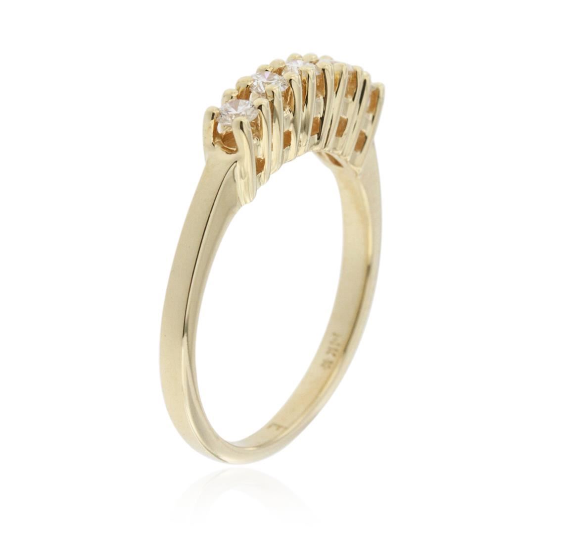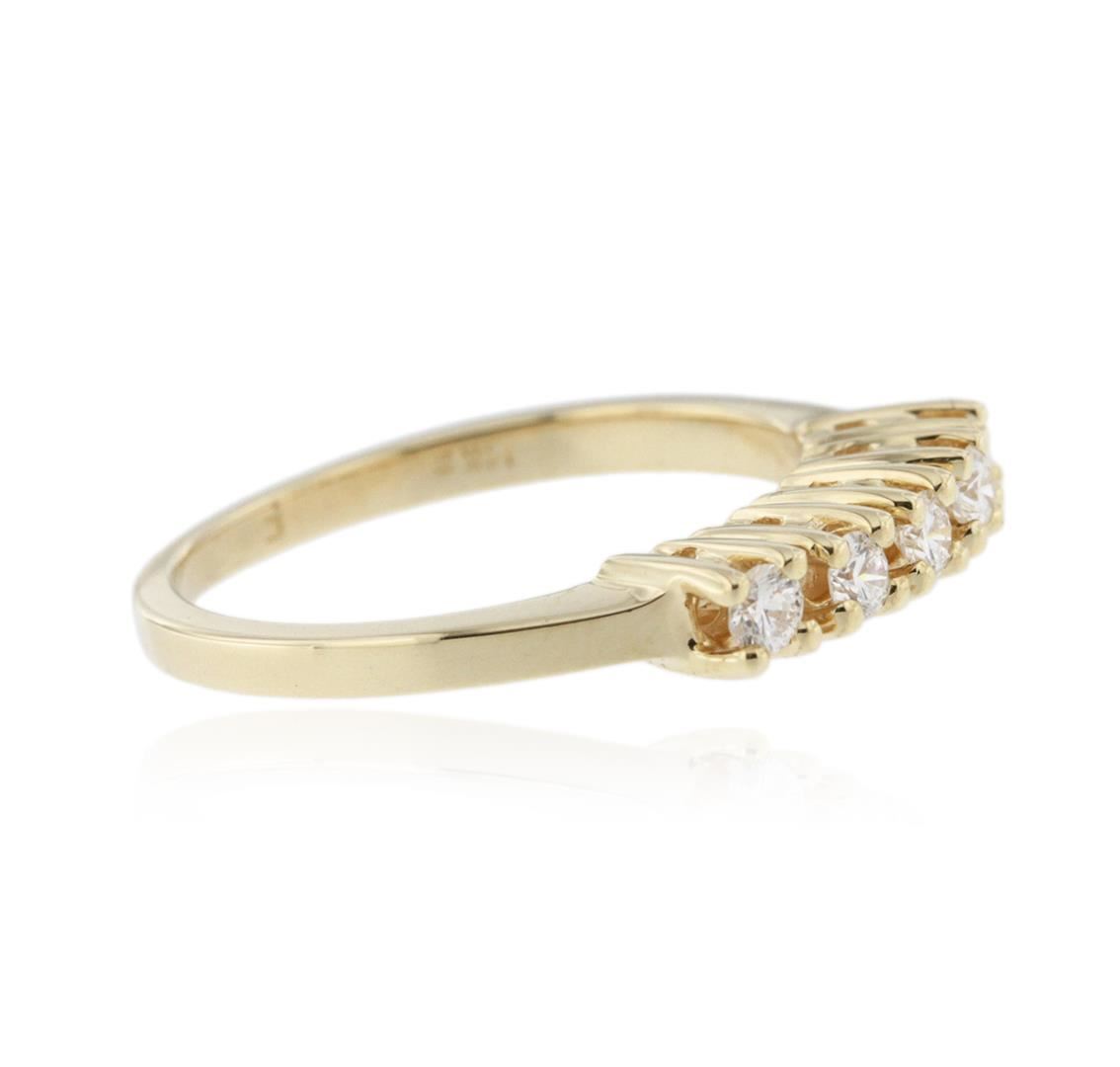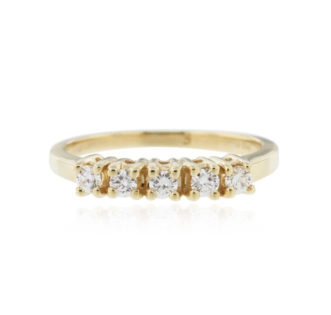 One ring featuring: 14KT yellow gold weighing 2.68 grams and five round cut diamonds weighing a total of 0.50ct.