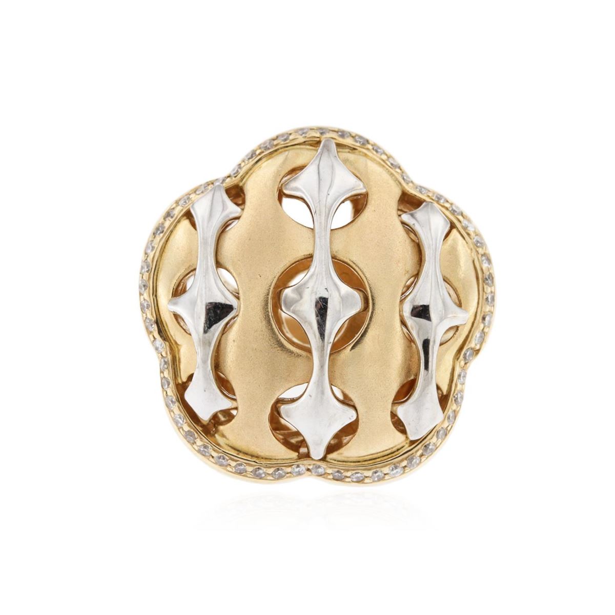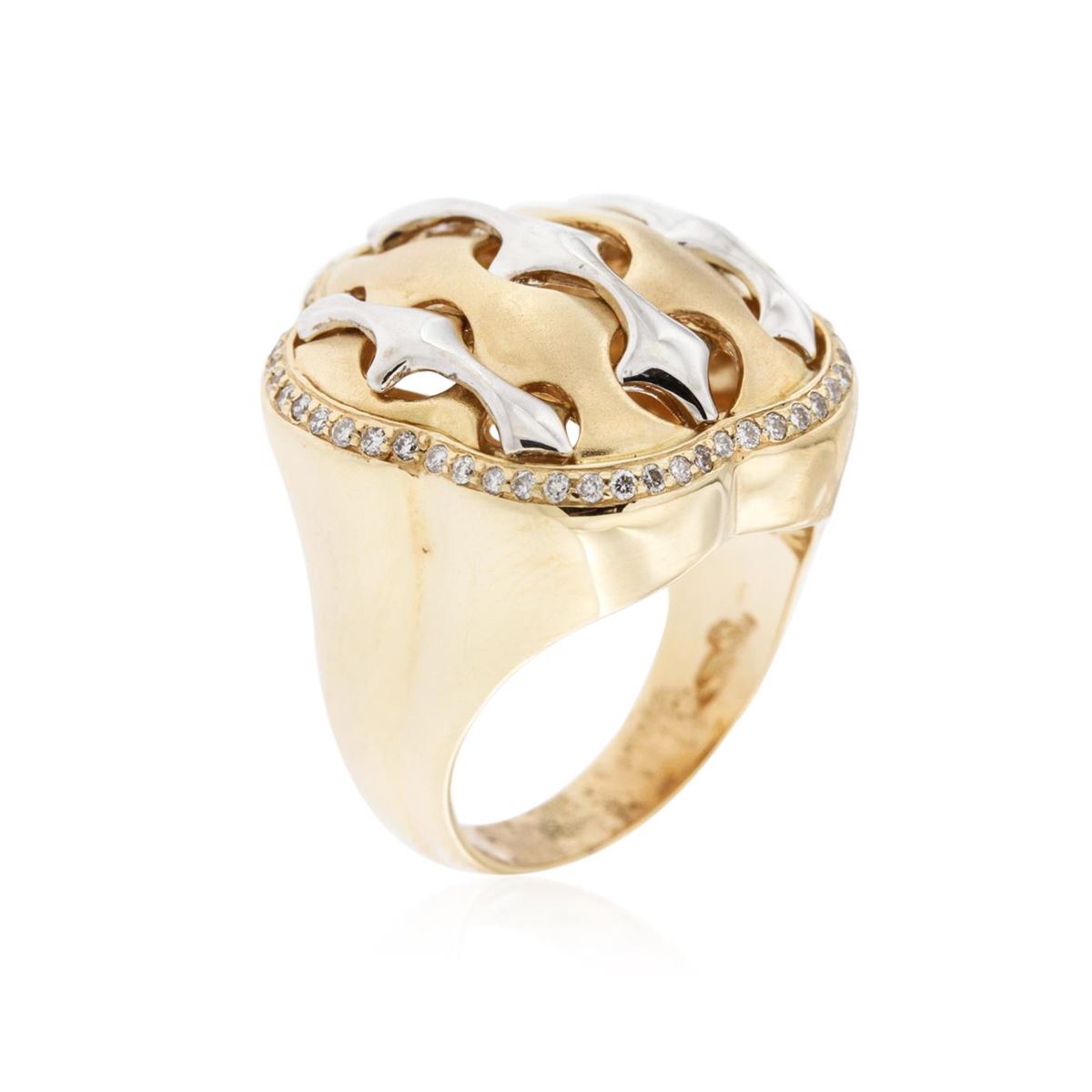 One electronically tested 14KT yellow gold Ladies die struck & assembled fancy ring with a bright polish finish. Identified with markings of "14K". Condition is excellent. Containing: Fifty-Four bead set round brilliant cut diamonds, measuring 1.20 - 1.20 x 0.72mm (depth est.) approximate total weight of 54 Stones = 0.50ct. Clarity of I-1 to I-2, Color of H - I. Total Weight of Diamonds 0.50ct. Total Weight of Ring 18.50gm. GGL Appraised at $4,846.00.