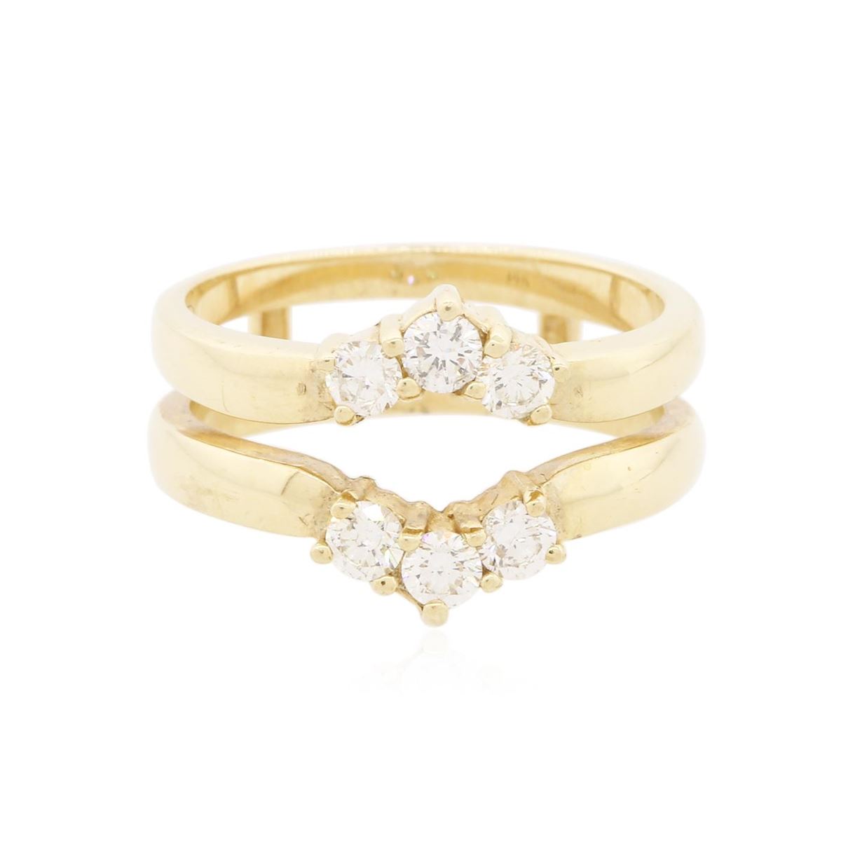 One ring featuring: 14KT yellow gold weighing 5.00 grams containing three prong set round diamonds with a total weight of 0.60ct.