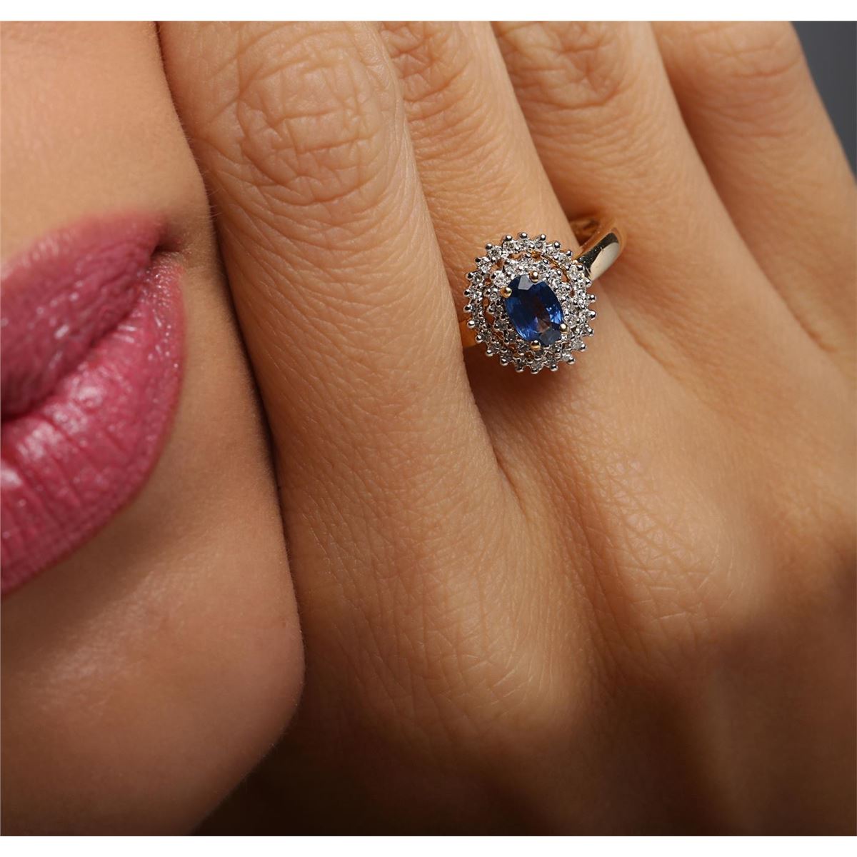 One ring featuring: 14KT yellow gold weighing 3.33 grams containing one sapphire center stone with a total weight of 0.63ct and 40 round cut diamonds with a total weight of 0.22cts.