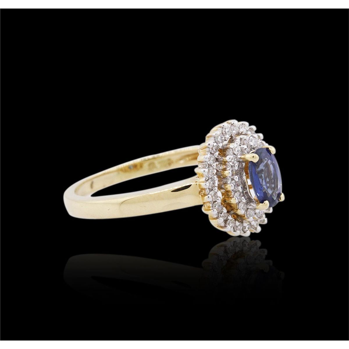 One ring featuring: 14KT yellow gold weighing 3.33 grams containing one sapphire center stone with a total weight of 0.63ct and 40 round cut diamonds with a total weight of 0.22cts.